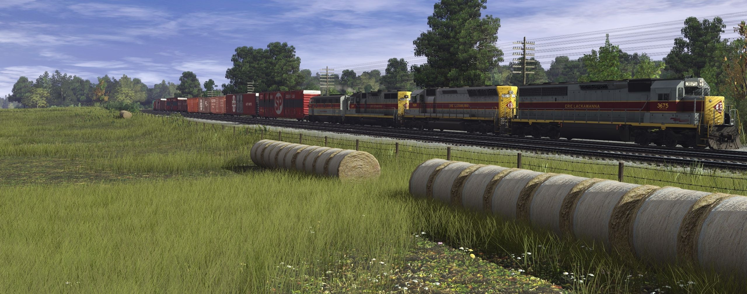 Tags: Trainz Railroad Simulator 2022, EL Jon, Default, EL SD45-2, EL SD45, EL GP35, EL EMD F3A Maroon Ph1 8411, SP 616532-616553 1970, 50ft Boxcar SOUTHERN Railway System yt#, 50ft Boxcar Santa Fe y#, 50ft Boxcar WESTERN MARYLAND RAILROAD ps#, WM 50' ACF Boxcar, SSW 65091-65103 1979, ATSF 36557-36594 1970