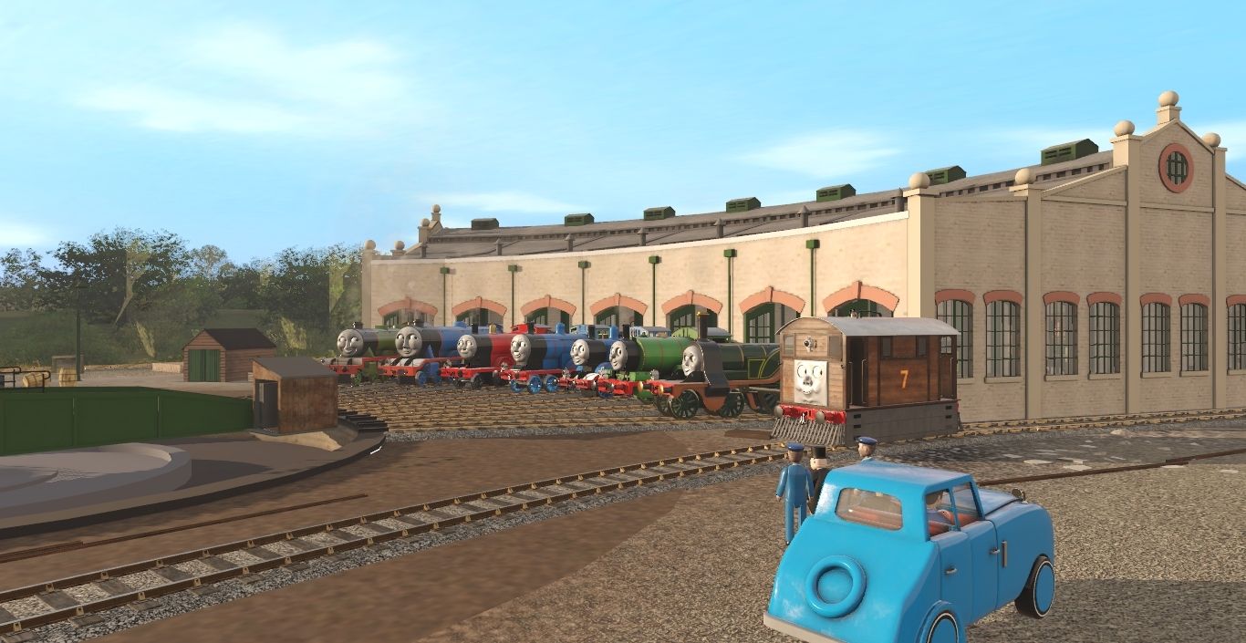 Tags: Trainz Railroad Simulator 2019, Hit Era - Tidmouth Sheds (CAE+), Default, SF - Sir Topham Hatt's Car, TTTE - Toby The Tram Engine [TRS19], TW3D - Emily the Emerald Engine, SudrianRails - Percy the Small Engine, TTTE - Thomas The Tank Engine, TTTE - Edward The Blue Engine [TRS19], TTTE - James the red engine, TTTE - Gordon, TTTE - Henry, Sodor Garratt (Water Tank) - Will, Sodor Garratt (Boiler) - Grady