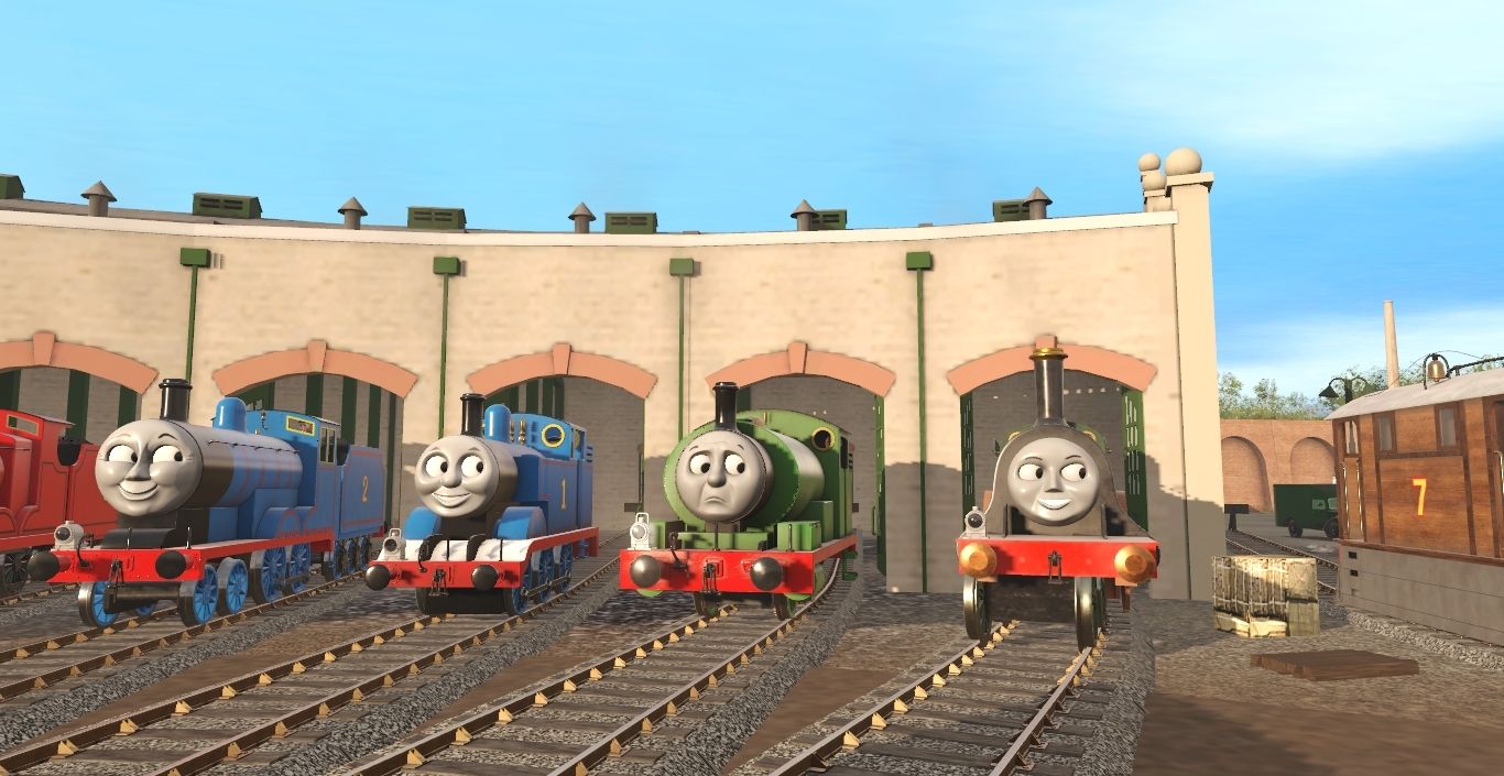 Tags: Trainz Railroad Simulator 2019, Hit Era - Tidmouth Sheds (CAE+), Default, SudrianRails - Percy the Small Engine, TW3D - Emily the Emerald Engine, TTTE - Thomas The Tank Engine, TTTE - Toby The Tram Engine [TRS19], TTTE - Edward The Blue Engine [TRS19], SF - Sir Topham Hatt's Car, TTTE - James the red engine, TTTE - Gordon, TTTE - Henry, Sodor Garratt (Water Tank) - Will, Sodor Garratt (Boiler) - Grady