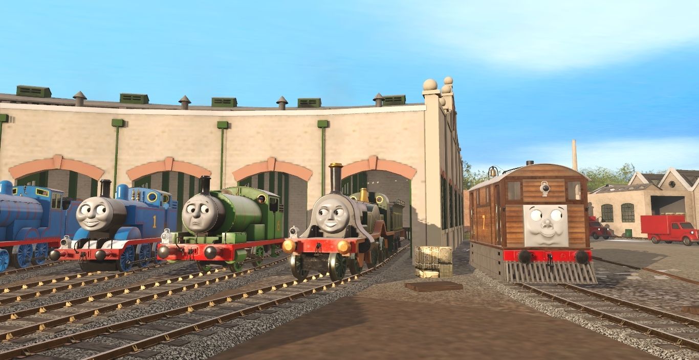 Tags: Trainz Railroad Simulator 2019, Hit Era - Tidmouth Sheds (CAE+), Default, TTTE - Toby The Tram Engine [TRS19], SudrianRails - Percy the Small Engine, TW3D - Emily the Emerald Engine, TTTE - Thomas The Tank Engine, TTTE - Edward The Blue Engine [TRS19], TTTE - James the red engine, TTTE - Gordon, TTTE - Henry, Sodor Garratt (Water Tank) - Will, Sodor Garratt (Boiler) - Grady, Sodor Garratt (Coal Tank) - Cory
