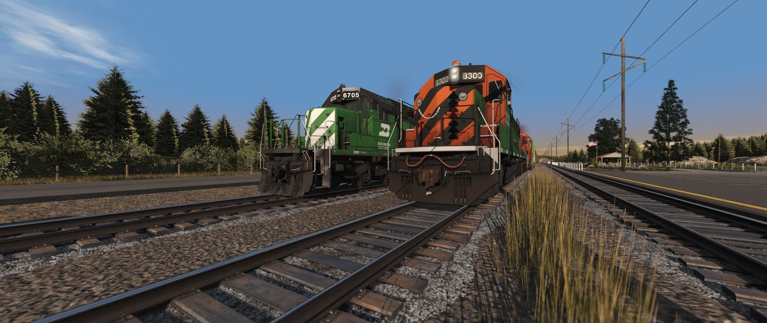 Tags: Trainz Railroad Simulator 2022, BN Oasis V1.5, Default - 17:36 17/07/2022 - 00:00, SD60 BN Tiger Stripe, BN SD40-2 1a, BN GP38-2, SOO GP38-2 [Red] ph2a, Great Northern Class S-2 4-8-4, Great Northern Class S-2 Tender, Bulkhead Flatcar BN 62 ft, Bulkhead Flatcar D&RGW 62 ft, BTVFD BN AUTO RACK, BN Trinity 3 Bay Hopper, Boxcar Evans 53' DPD GTW Weathered