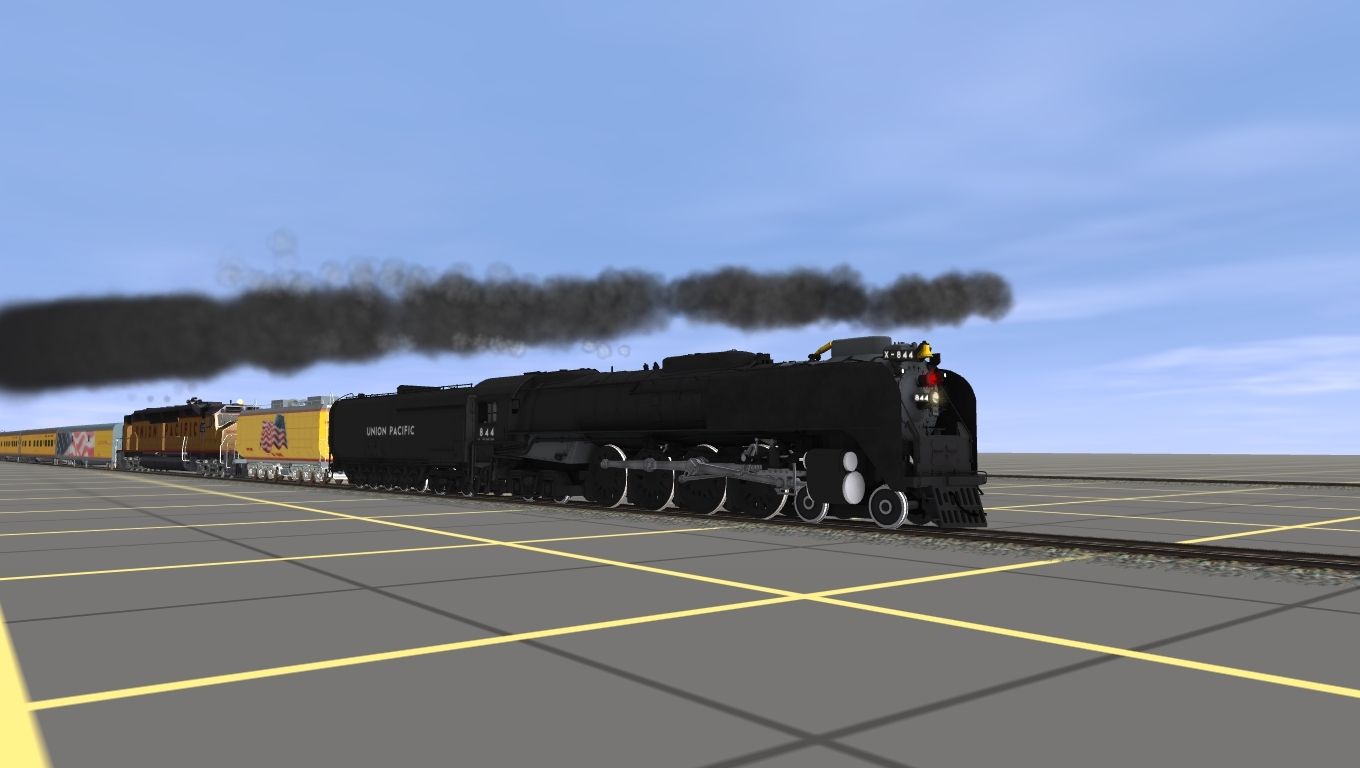 Tags: Trainz: A New Era, Test Route, new route, UPRR FEF-3 844, UP DD40X, UPRR FEF Black oil tender, UP Auxiliary Tender 809 (Jim Adams) SR, UP Baggage 5769 Council Bluffs, UP Lightweight 1947 COSF 6-6-4 American Captain, UP Lightweight 1947 COSF 6-6-4 American Ranger, UP Lightweight 1941 COSF Coach Market Street, UP Lightweight 1947 COLA 2 Lounge Little Nugget, UP Lightweight 1941 COSF Lounge Marina, UP Lightweight 1941 COSF Articulated Diner Mission Dolores
