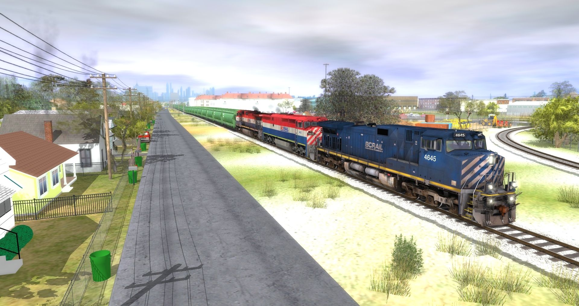 Tags: Trainz: A New Era, AWRR-East Subdivision, BC Rail C44-9W 4645-4654, BC Rail C40-8M 4601-4622, BC Rail C44-9WL 4641-4644, BN grain hopper 4 bay #481523