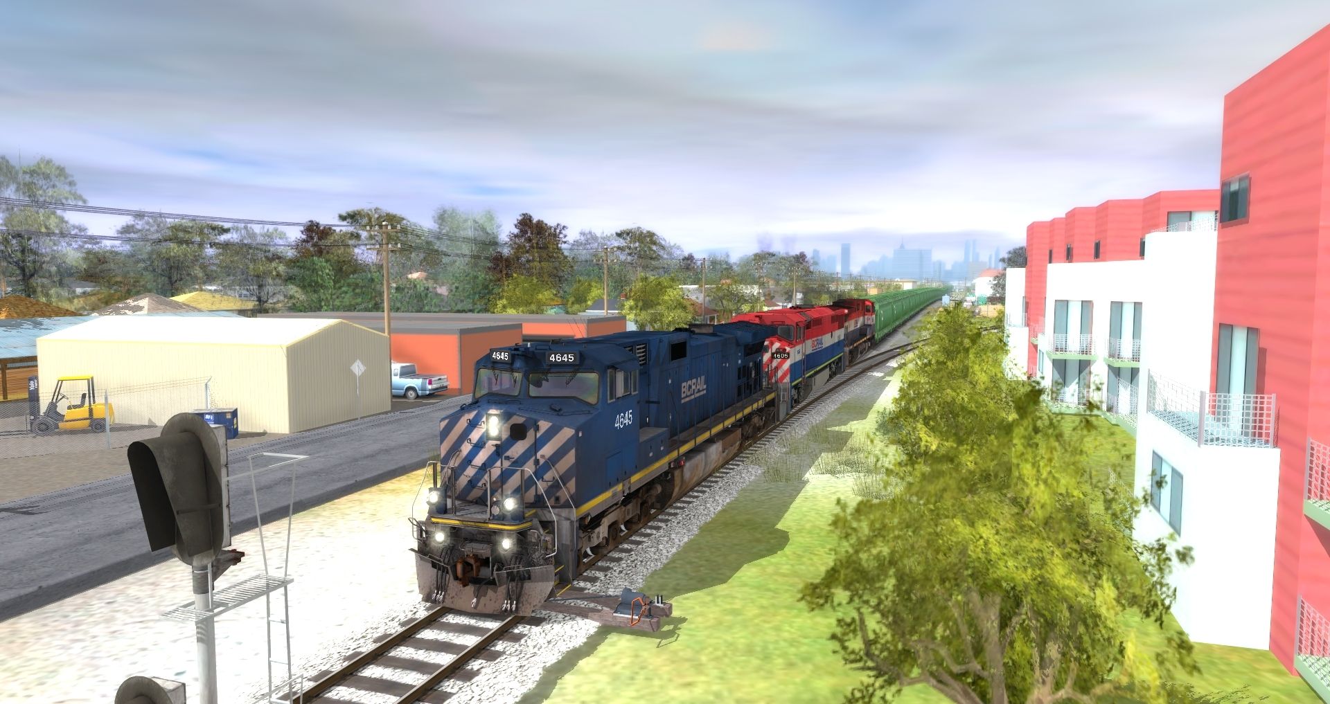 Tags: Trainz: A New Era, AWRR-East Subdivision, BC Rail C44-9W 4645-4654, BC Rail C40-8M 4601-4622, BC Rail C44-9WL 4641-4644, BN grain hopper 4 bay #481523