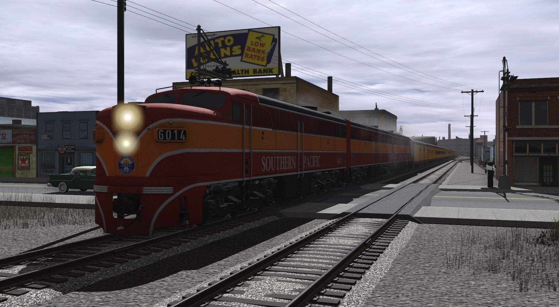 Tags: Trainz Railroad Simulator 2019, Downtown Module No Flagmen, Flying Cam, SP ALCo PA-1, SP ALCo PB-1, WP 4-6-0 94 40s Engine, 30in Davenport (Yellow), UP Lightweight 1947 COLA Baggage, UP Lightweight 1947 COSF Baggage Dorm, UP Lightweight 1941 COSF Coach Montgomery Street, UP Lightweight 1947 COSF Coach 5363, UP Lightweight 1941 COSF Articulated Diner Fort Mason, WP 4-6-0 94 40s Tender