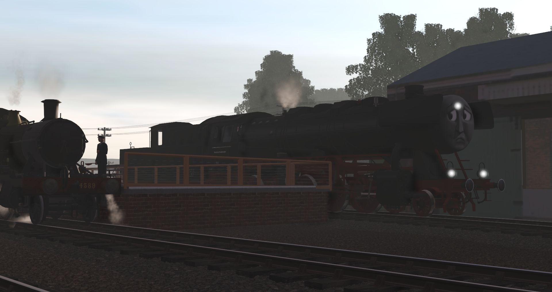 Tags: Trainz Railroad Simulator 2019, Cornish Mainline and Branches - TRS19, Default, GWR 45xx, Otto the WS DB BR.50, BR Class 55 Deltic (weathered), BR Mk1 RFO Carmine, BR Mk1 SK Carmine, BR Mk1 RB Carmine, BR Mk1 SO Carmine, Otto's Tender, GWR 1922 3rd Plymouth lot 1308, BR MK1 Maroon BG, GWR 1922 3rd brake Plymouth lot 1321
