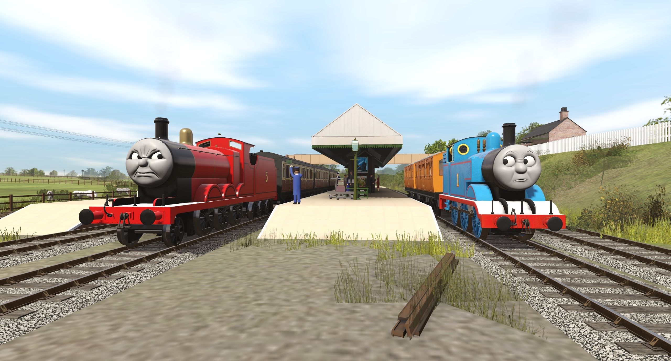 Tags: Trainz Railroad Simulator 2019, IoS - The Kellsthorpe Extension, IOS, Flying Cam PBR, TTTE - James the red engine, HE - Thomas The Tank Engine, TTTE - James's Tender, TTTE - Annie [TRS19], TTTE - Clarabel [TRS19], Engie's - TVS S6 Maunsell Composite Coach (TS19), Engie's - TVS S6 Maunsell Brake Coach (TS19)