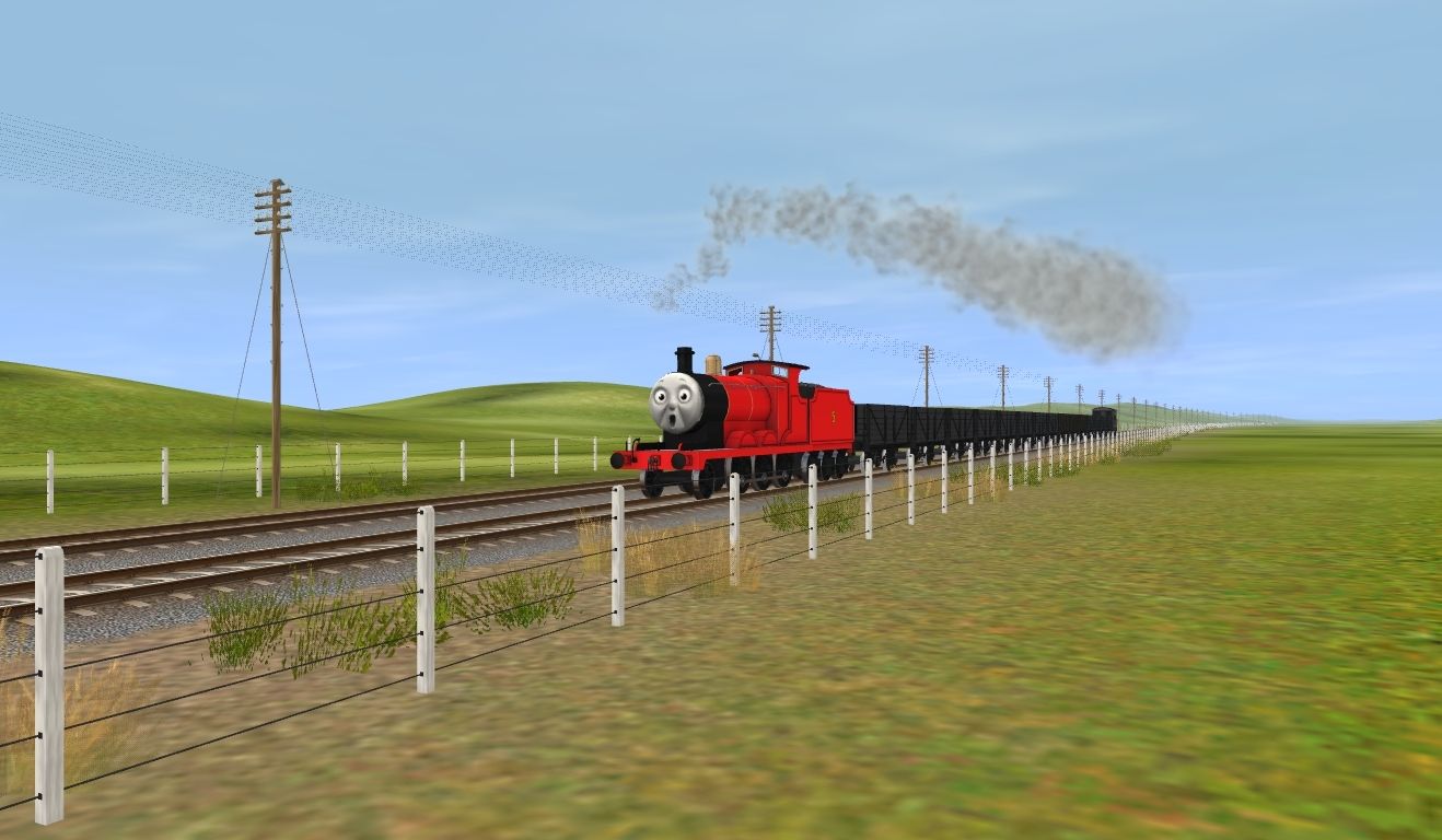 Tags: Trainz: A New Era, Lowfell Valley Railway Network (TANE), Lowfell Valley Railway Network (TANE) - Default, James the Red Engine 2010, James' Tender 2010, Troublesome Truck - Grey (Large Face), Troublesome Truck - Brown (Large Face), Troublesome Truck - Brown (Small Face), Troublesome Truck - Grey (Small Face), Sodor Brake Van Type 1 - Grey