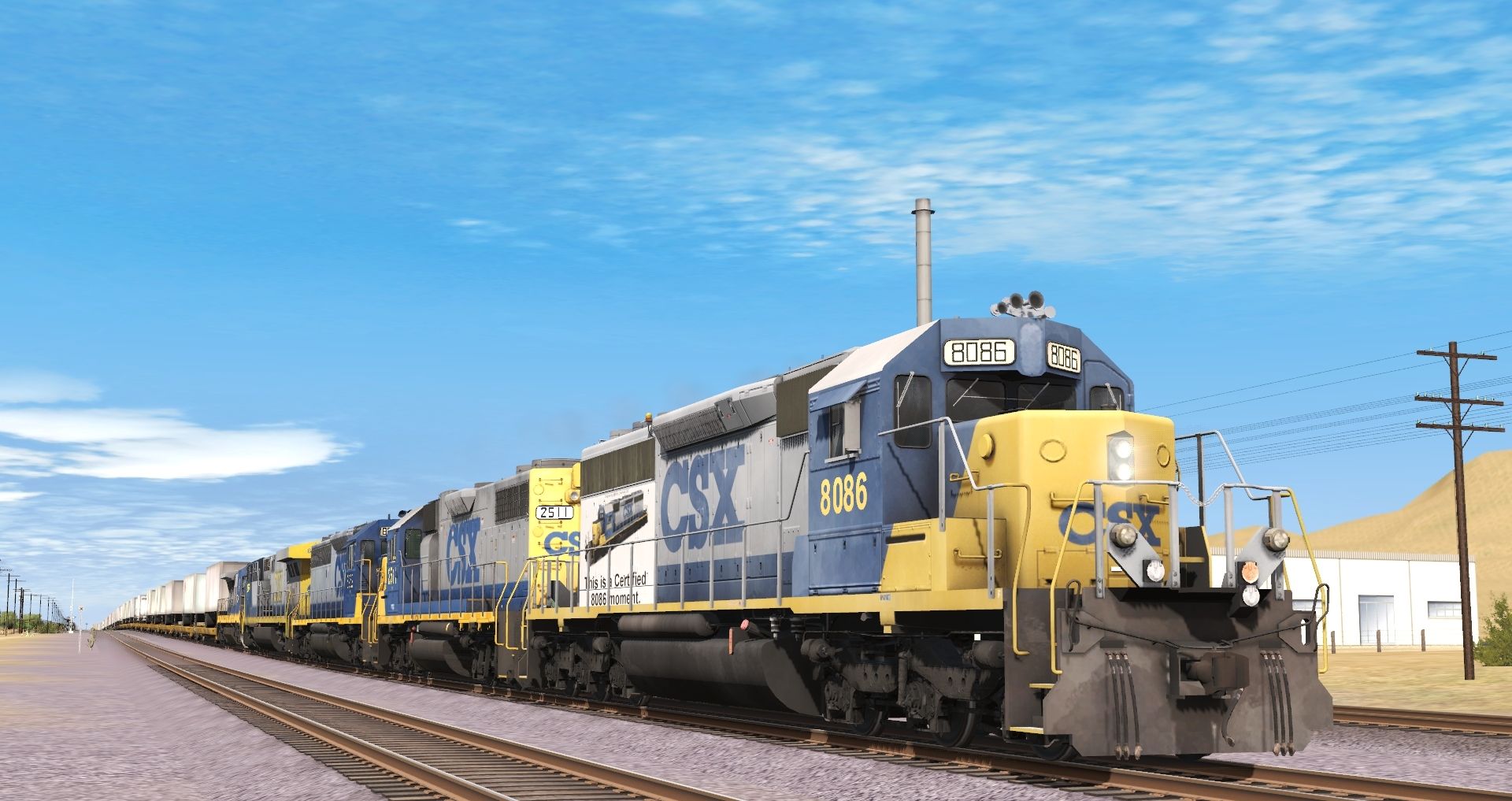 Tags: Trainz Railroad Simulator 2019, Mojave Sub Division, Default, CSX SD40-2 YN2 8086, CSX GP38-2 YN-2 (ex-SCL), CSX YN2 SD45-2, CSX AC6000CW YN2 phase 2, CSX B40-8 YN2 (ex NYSW) Early, TTX 89ft TOFC Flatcar, FEC Brown 89ft TOFC Flatcar, TTX Patched 89ft TOFC Flatcar, FEC Green 89ft TOFC Flatcar, CSX Bay Window Caboose