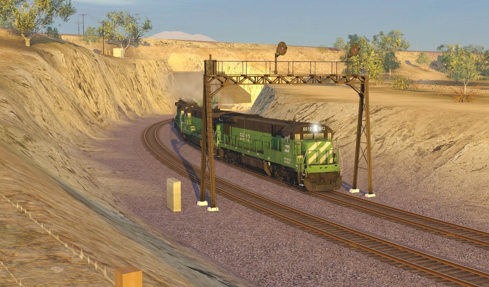 Tags: Trainz Railroad Simulator 2019, Mojave Sub Division, Default, Flying Cam, BN C30-7, BNSF SD40-2 1706, BN Trinity 3 Bay Hopper, BN grain hopper 4 bay #481523