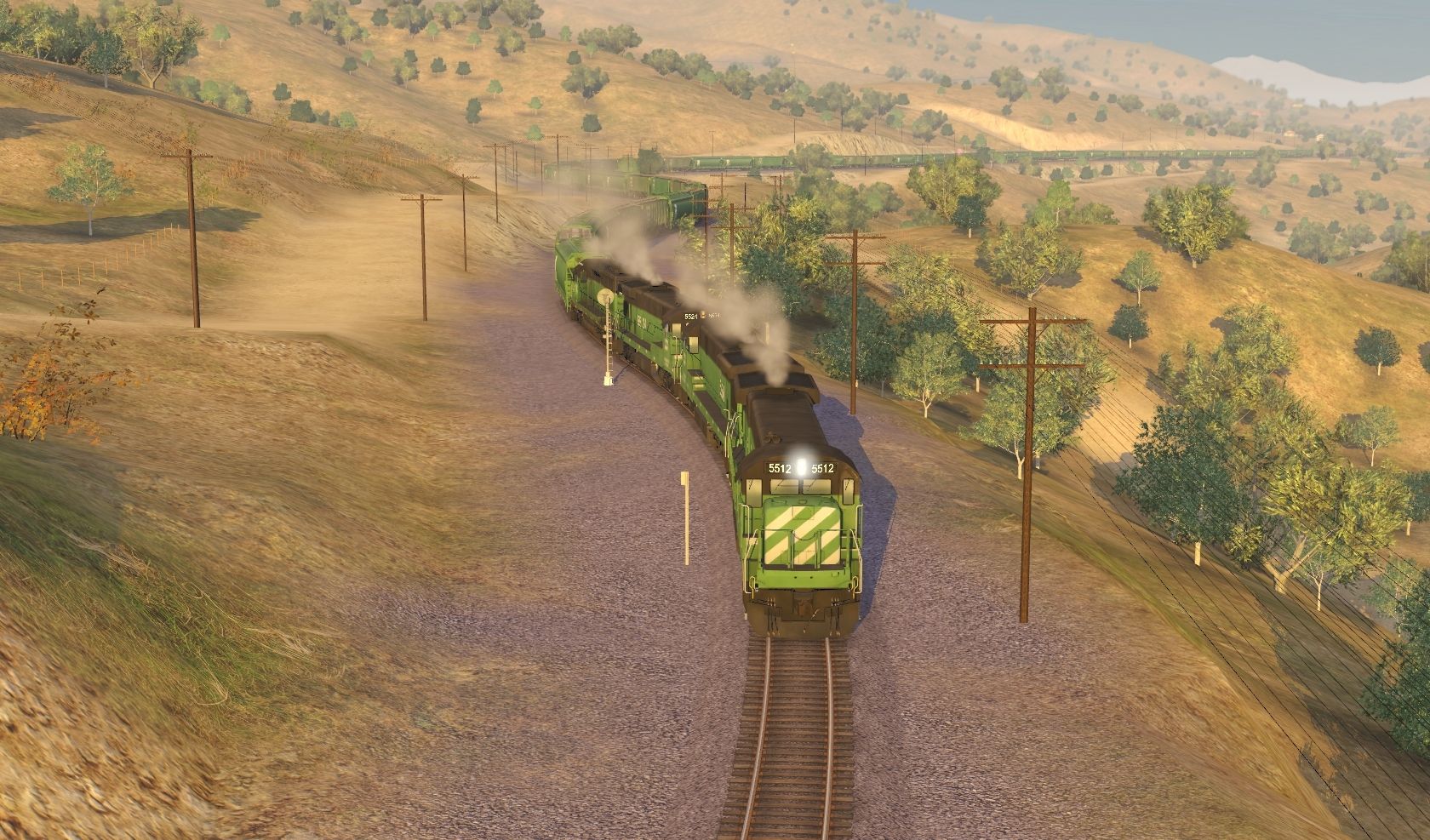 Tags: Trainz Railroad Simulator 2019, Mojave Sub Division, Default, BN C30-7, BNSF SD40-2 1706, BN Trinity 3 Bay Hopper, BN grain hopper 4 bay #481523