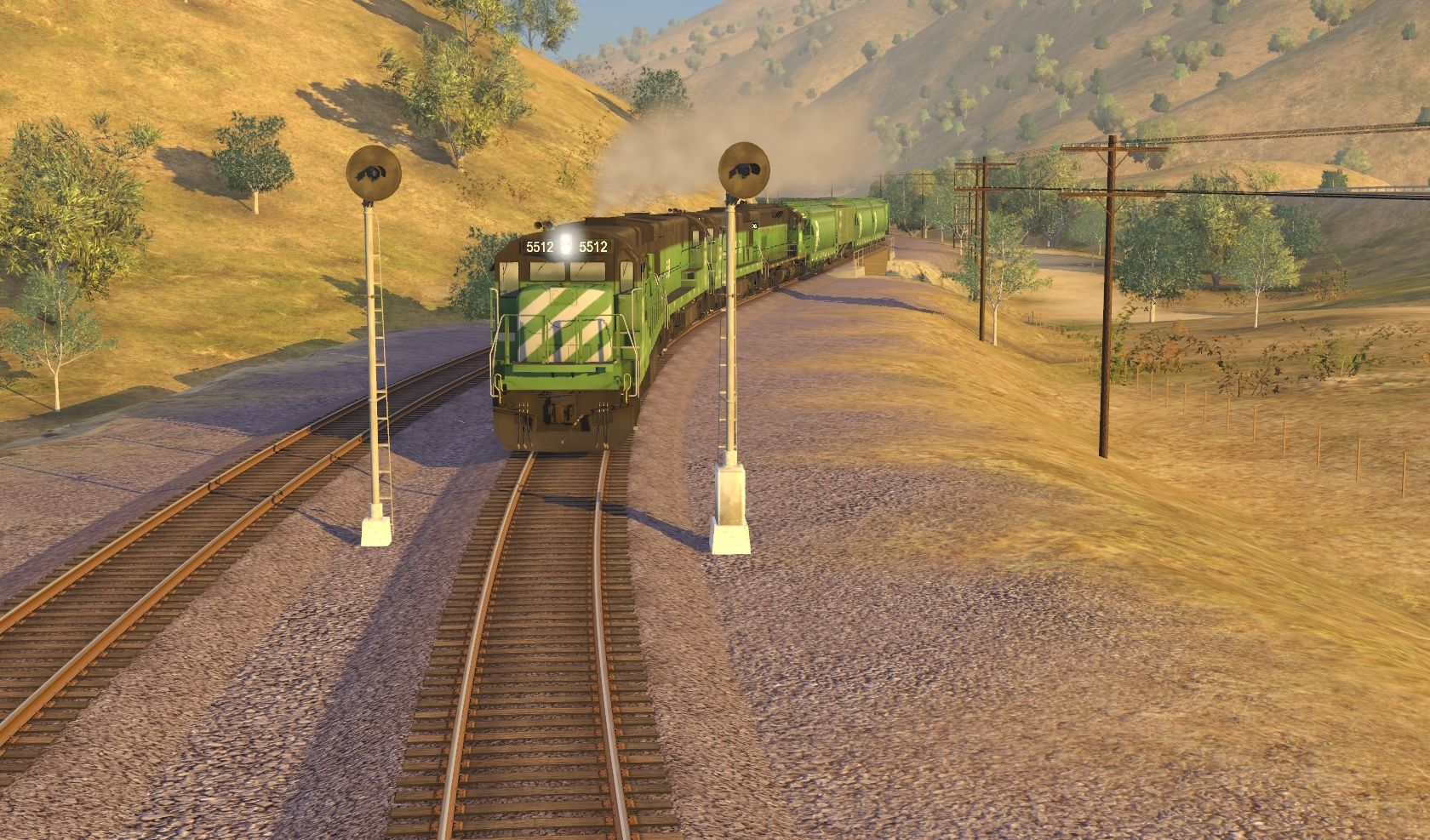 Tags: Trainz Railroad Simulator 2019, Mojave Sub Division, Default, BN C30-7, BNSF SD40-2 1706, BN Trinity 3 Bay Hopper, BN grain hopper 4 bay #481523
