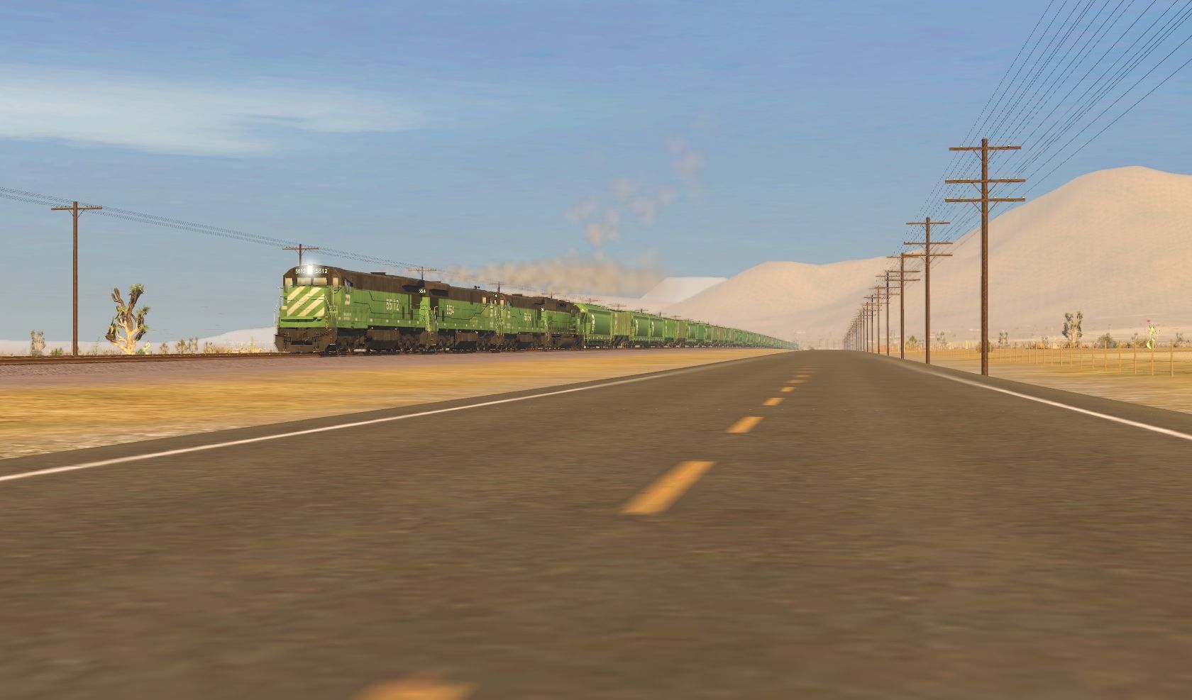 Tags: Trainz Railroad Simulator 2019, Mojave Sub Division, Default, BN C30-7, BNSF SD40-2 1706, BN Trinity 3 Bay Hopper, BN grain hopper 4 bay #481523