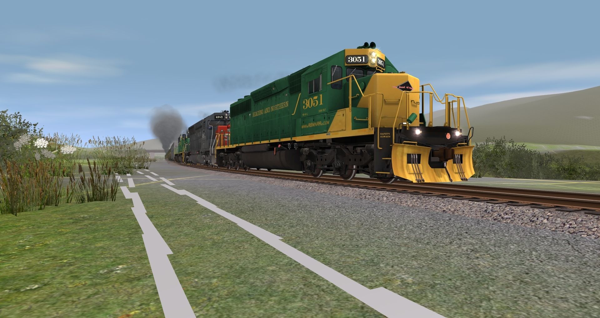 Tags: Trainz: A New Era, READING & NORTHERN, Default, RBMN SD40-2, SP SD45, RBMN SD50, C&O Kanawha K-4 Steam, Southern Streamlined Coach, Pullman Paul A Bert, Express C&O George Washington, Combine C&O George Washington, Coach C&O George Washington 735, Caboose C&O 90212 red, C&O Kanawha K-4 Tender