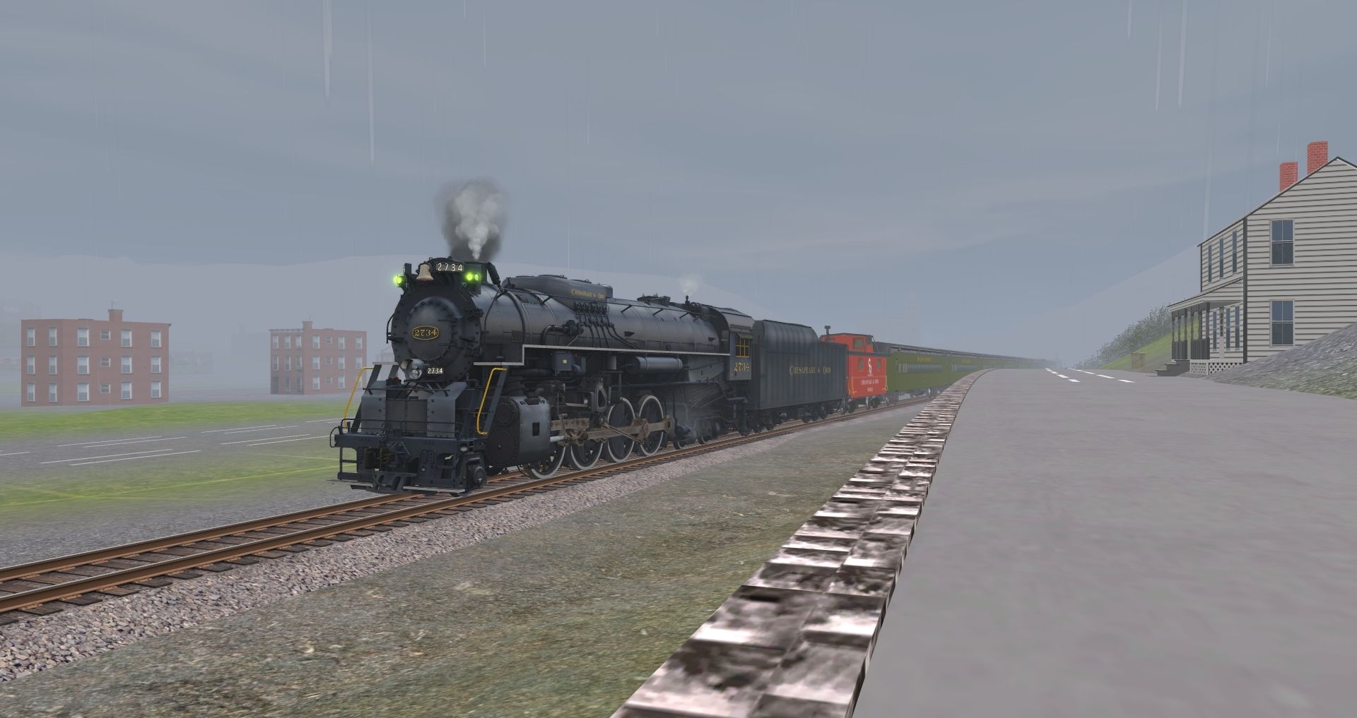 Tags: Trainz: A New Era, READING & NORTHERN, Default, C&O Kanawha K-4 Steam, RBMN SD50, C&O Kanawha K-4 Tender, Caboose C&O 90212 red, Coach C&O George Washington 735, Combine C&O George Washington, Express C&O George Washington, Pullman Paul A Bert, Southern Streamlined Coach
