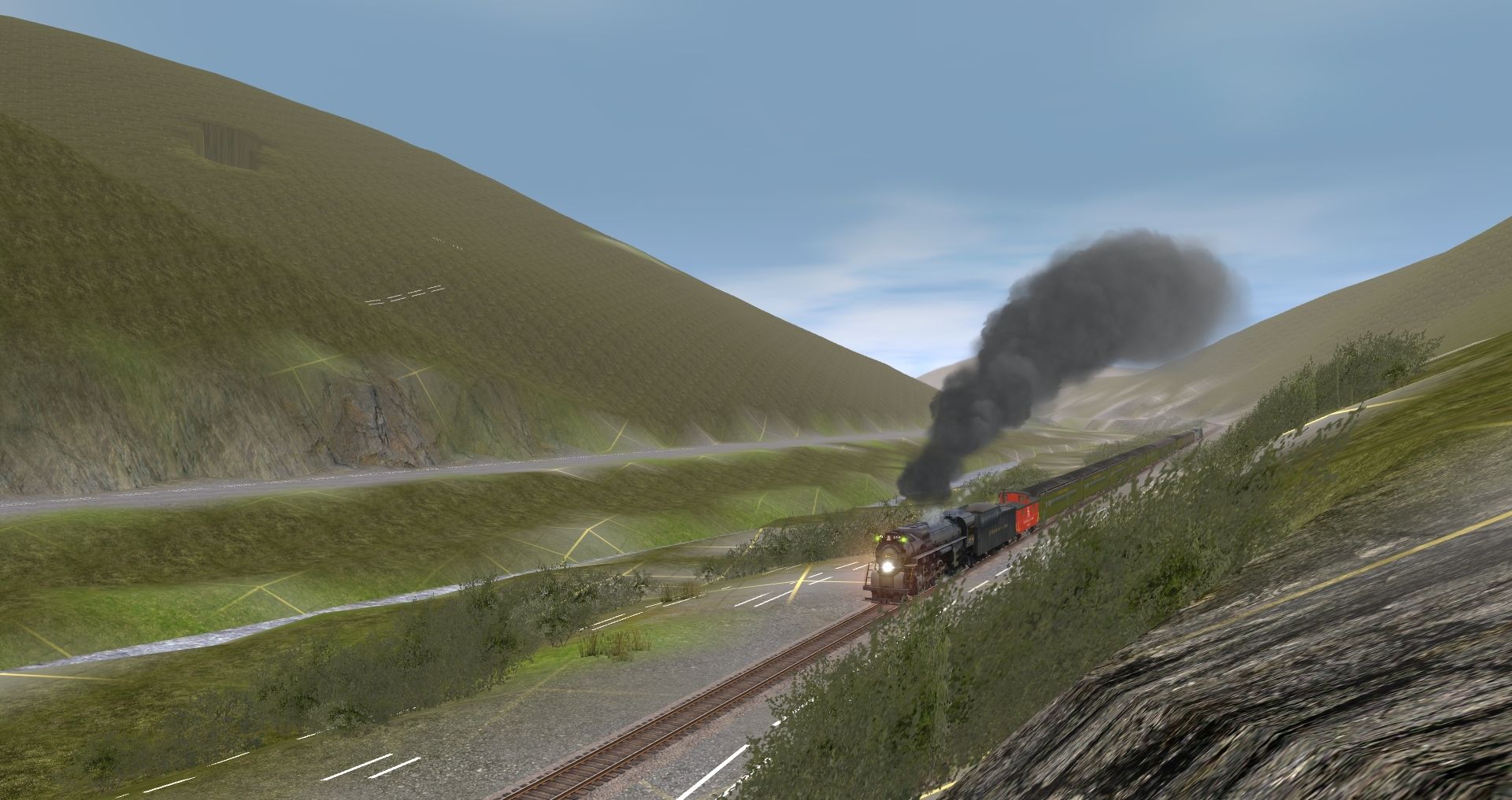 Tags: Trainz: A New Era, READING & NORTHERN, Default, C&O Kanawha K-4 Steam, RBMN SD50, C&O Kanawha K-4 Tender, Caboose C&O 90212 red, Coach C&O George Washington 735, Combine C&O George Washington, Express C&O George Washington, Pullman Paul A Bert, Southern Streamlined Coach