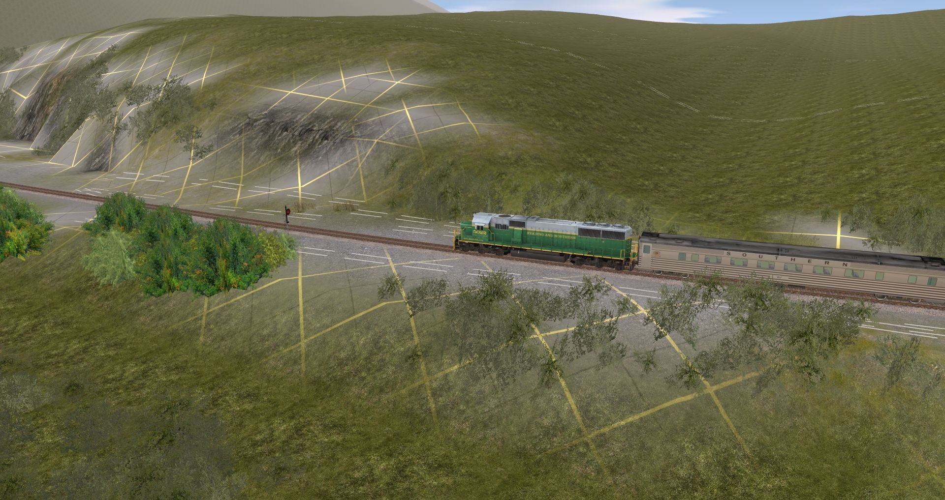 Tags: Trainz: A New Era, READING & NORTHERN, Default, RBMN SD50, C&O Kanawha K-4 Steam, Southern Streamlined Coach, Pullman Paul A Bert, Express C&O George Washington, Combine C&O George Washington, Coach C&O George Washington 735, Caboose C&O 90212 red, C&O Kanawha K-4 Tender
