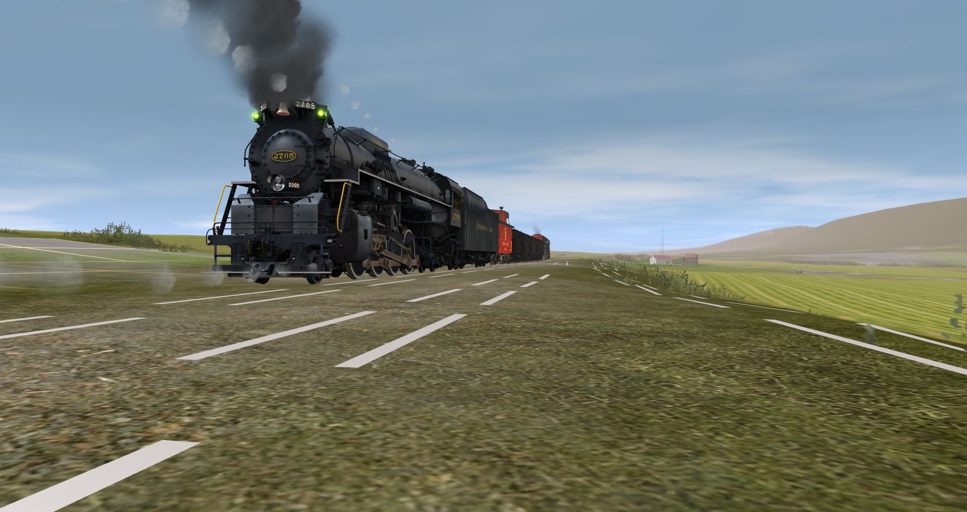 Tags: Trainz: A New Era, READING & NORTHERN, READING & NORTHERN - Default, C&O Kanawha K-4 Steam, SP SD45, C&O Kanawha K-4 Tender, Caboose C&O 90212 red, USRA 55T H B&O Mid