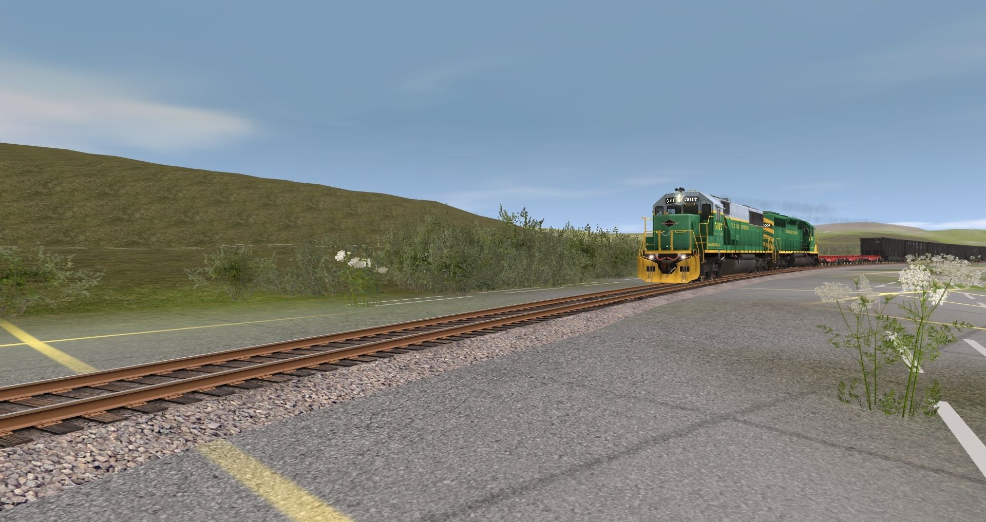 Posted by: Tomr0608 | Posted:2023-01-17 03:06:06 Caption: Tags: Trainz: A New Era, READING & NORTHERN, RBMN SD50, RBMN SD40-2, PRR FM flat car, Bethgon RBMN