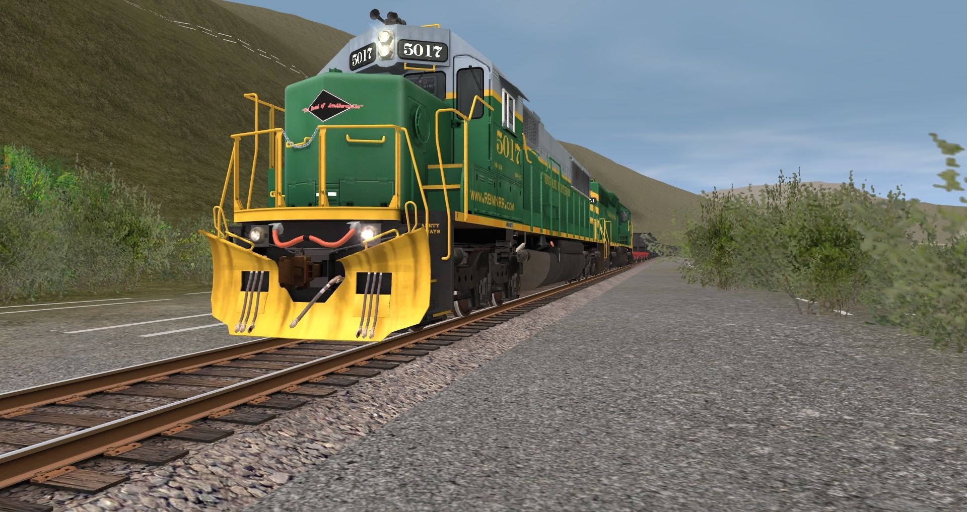 Posted by: Tomr0608 | Posted:2023-01-17 03:06:12 Caption: Tags: Trainz: A New Era, READING & NORTHERN, RBMN SD50, RBMN SD40-2, PRR FM flat car, Bethgon RBMN
