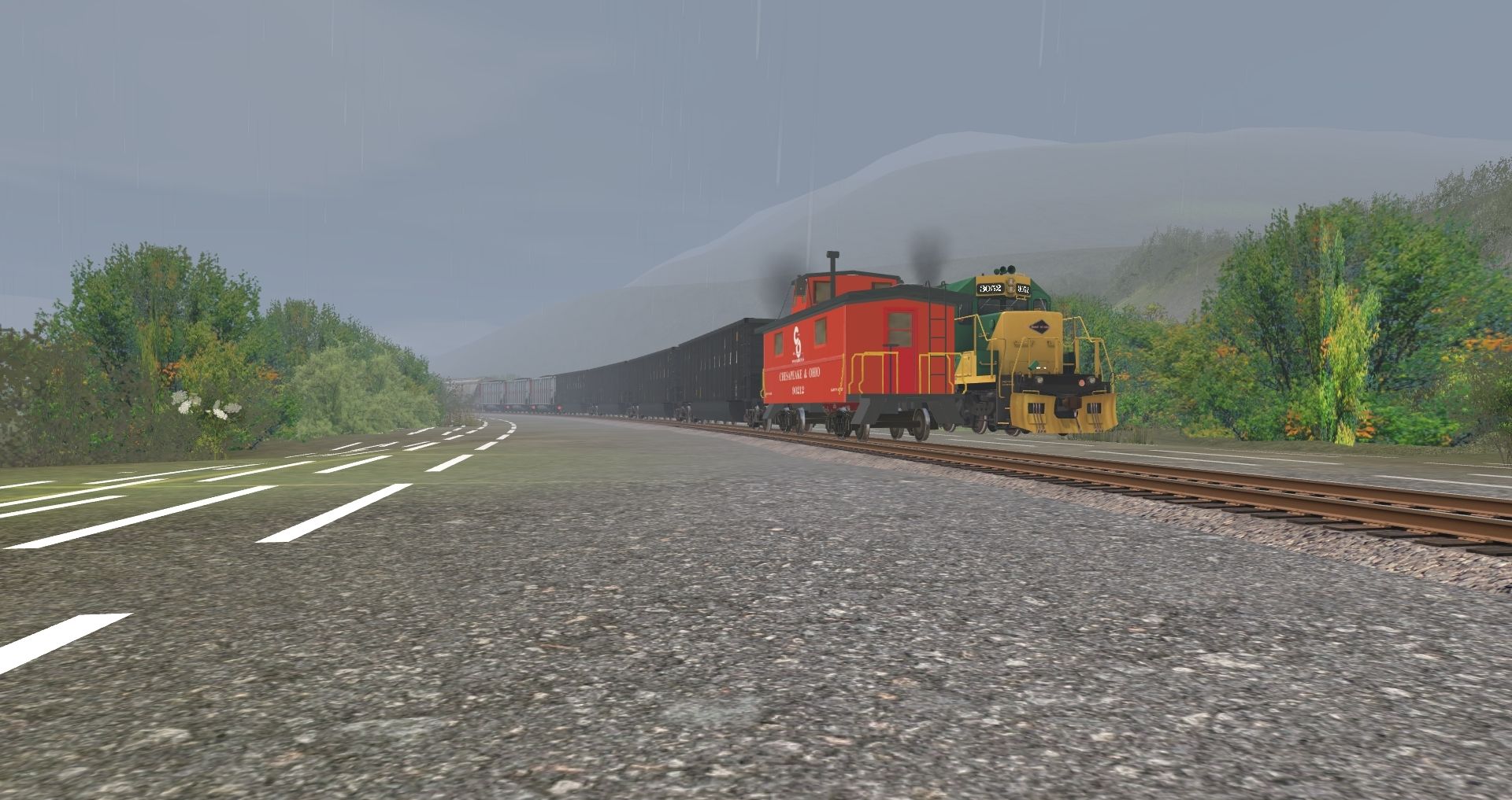 Tags: Trainz: A New Era, READING & NORTHERN, RBMN SW1500 #1546, ATSF SD45, RBMN SD40-2, Caboose C&O 90212 red, Bethgon RBMN, Custom C80 - Havenwood Southern, Custom ACF 3 Bay - W Farms LLC