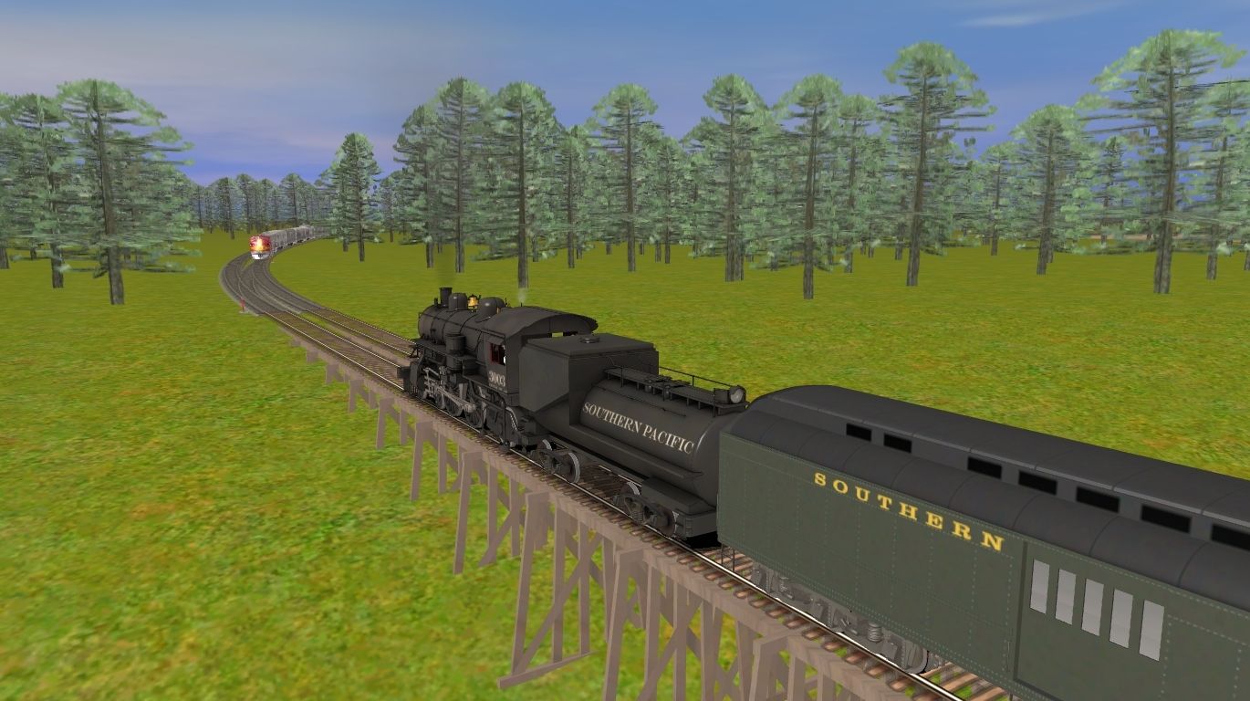 Tags: Trainz: A New Era, Plains Forest Version 1.0.1, ATSF Passenger Service, Southern Pacific A6 Atlantic 3003, ATSF F7A, ATSF F7B, Southern Pacific Pullman Baggage car, Southern Pacific A6 Atlantic 3003 Tender, Southern Pacific Pullman Style RPO-Baggage Combine, Southern Pacific Pullman Coach, Southern Pacific Pullman Diner, Southern Pacific Pullman Smoker, ATSF SS Baggage Car, ATSF SS Pullman - Pine series