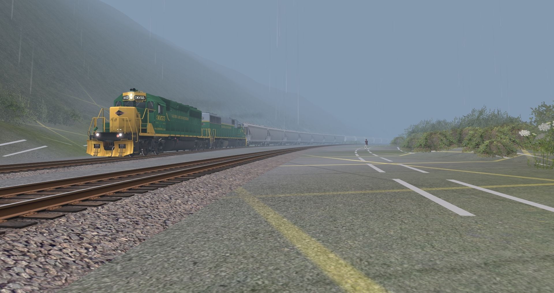 Tags: Trainz: A New Era, READING & NORTHERN, Default, RBMN SD40-2, RBMN SD50, JRPX ACF Centerflow 4 Bay round hatch, Cylindrical Hopper - Cotton Belt