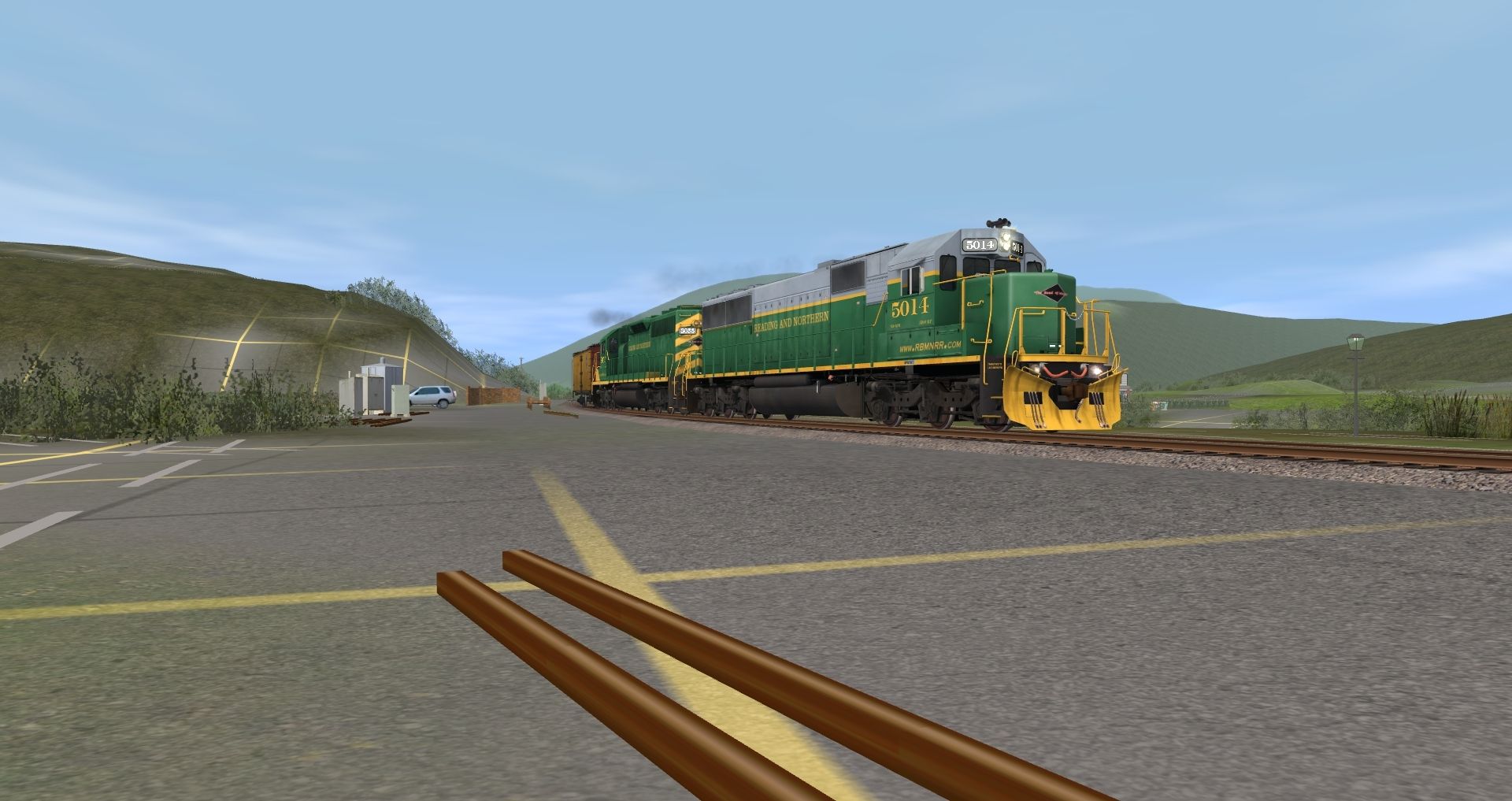 Tags: Trainz: A New Era, READING & NORTHERN, Default, RBMN SD50, RBMN SD40-2, RBMN SW1500 #1546, C&O Kanawha K-4 Steam, RBMN ACF Centerflow 3 Bay, PFE R-40-2 Reefer Early, Mill Gondola 52' Railgon, C&O Kanawha K-4 Tender