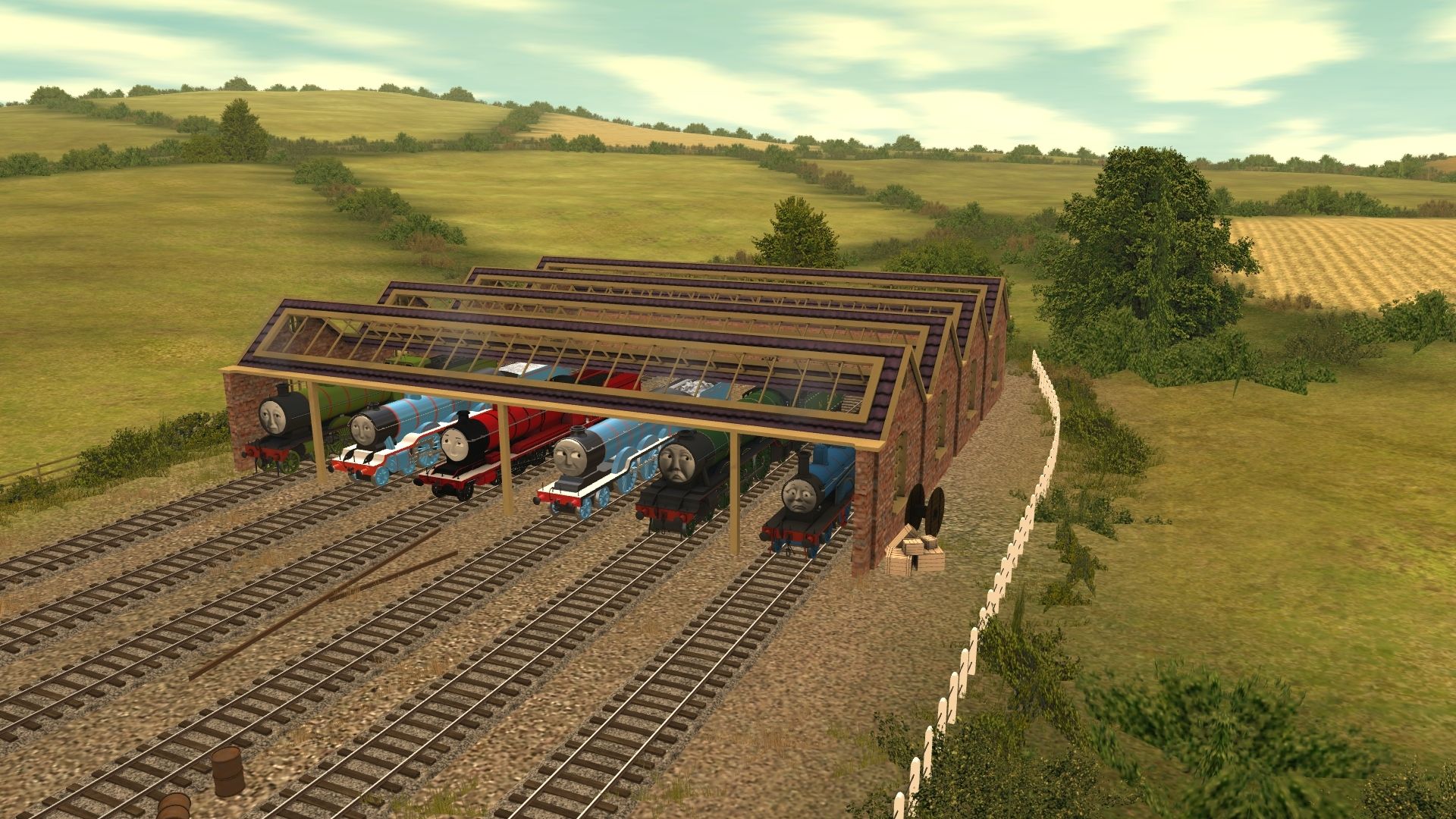 Tags: Trainz: A New Era, CGW - Edward's Day Out Sheds yard and station - FarawayQuarry13, RWS Edward (Original Shape - NWR), RWS Gordon (Original Shape - LNER Livery), 98462 the Loaned Engine, Geoffrey The Imaginary Engine TANE/TRS19, Crovan the Mean Engine, RWS Henry (Original Shape - NWR Green), RWS Edward (Furness - NWR) Tender, 98462's Tender, RWS Gordon (Original Shape - LNER) Tender, Geoffrey's Tender TANE/TRS19, Crovan's Tender