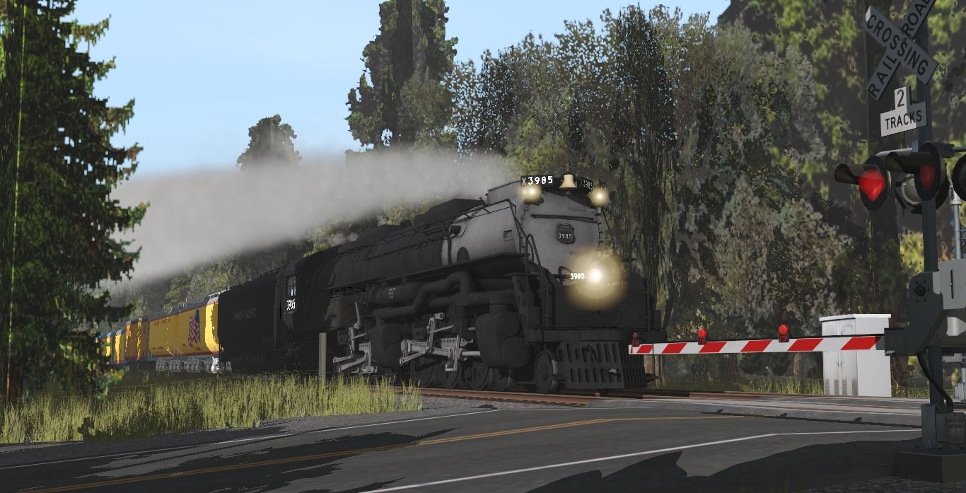 Posted by: EvanGaines | Posted:2023-01-19 20:18:31 Caption: Tags: Trainz Railroad Simulator 2022, Forest Railroad Crossing for Railfanning, UP Steam Scenes - June 2008