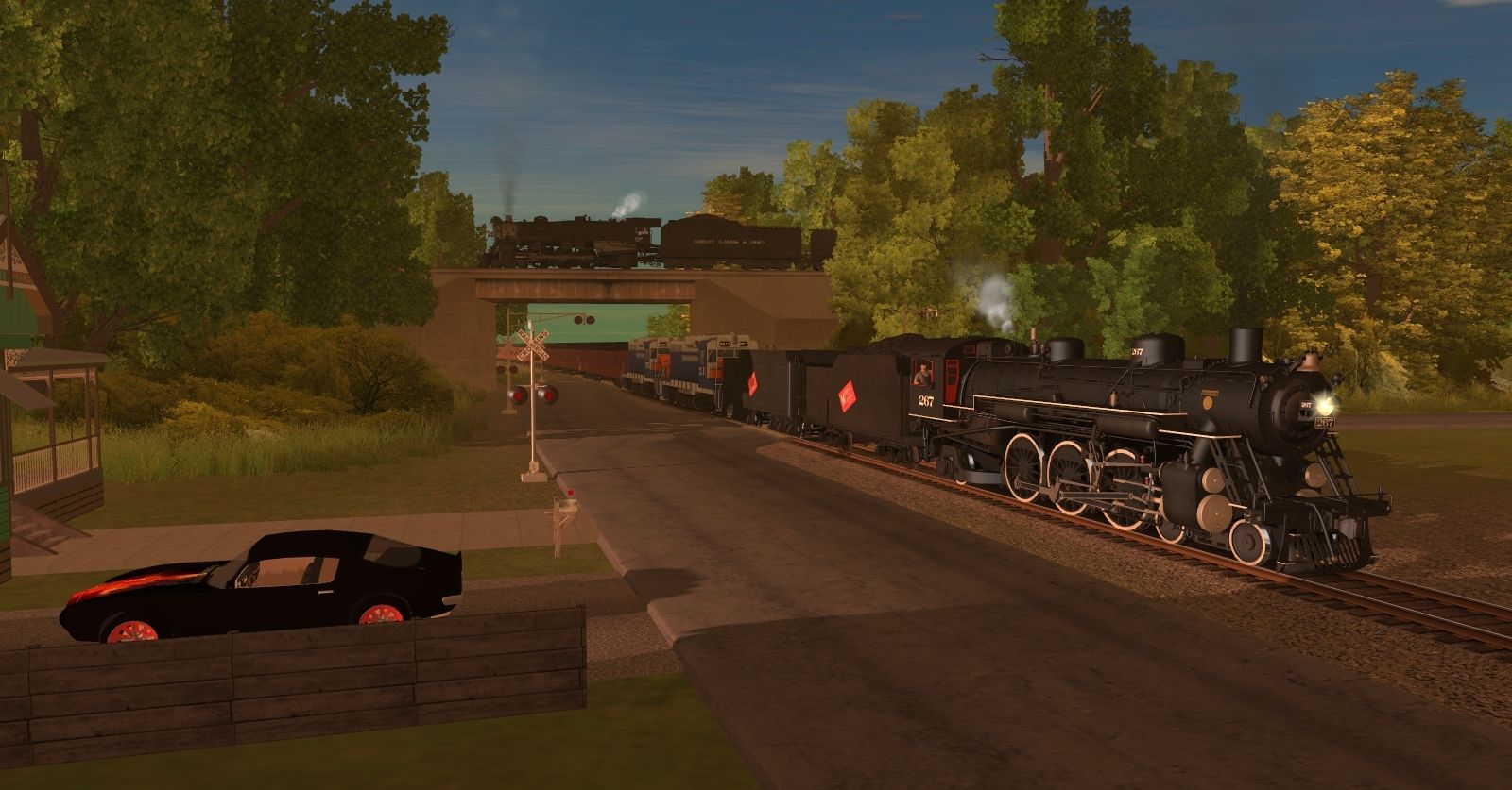 Tags: Trainz: A New Era, PRR Greenville to Indianapolis, Mobile & Ohio Pacific Engine, Star Rail Services GP30, GL&O 195 Engine, Mobile & Ohio Pacific Tender, Mobile & Ohio Pacific Aux Tender, GL&O 195 Tender, GL&O 195 Aux Tender, R&N Baggage Generator Red Faded, R&N Coach Red Faded, R&N Pullman Parlor Red, R&N Pullman Sleeper Red Faded