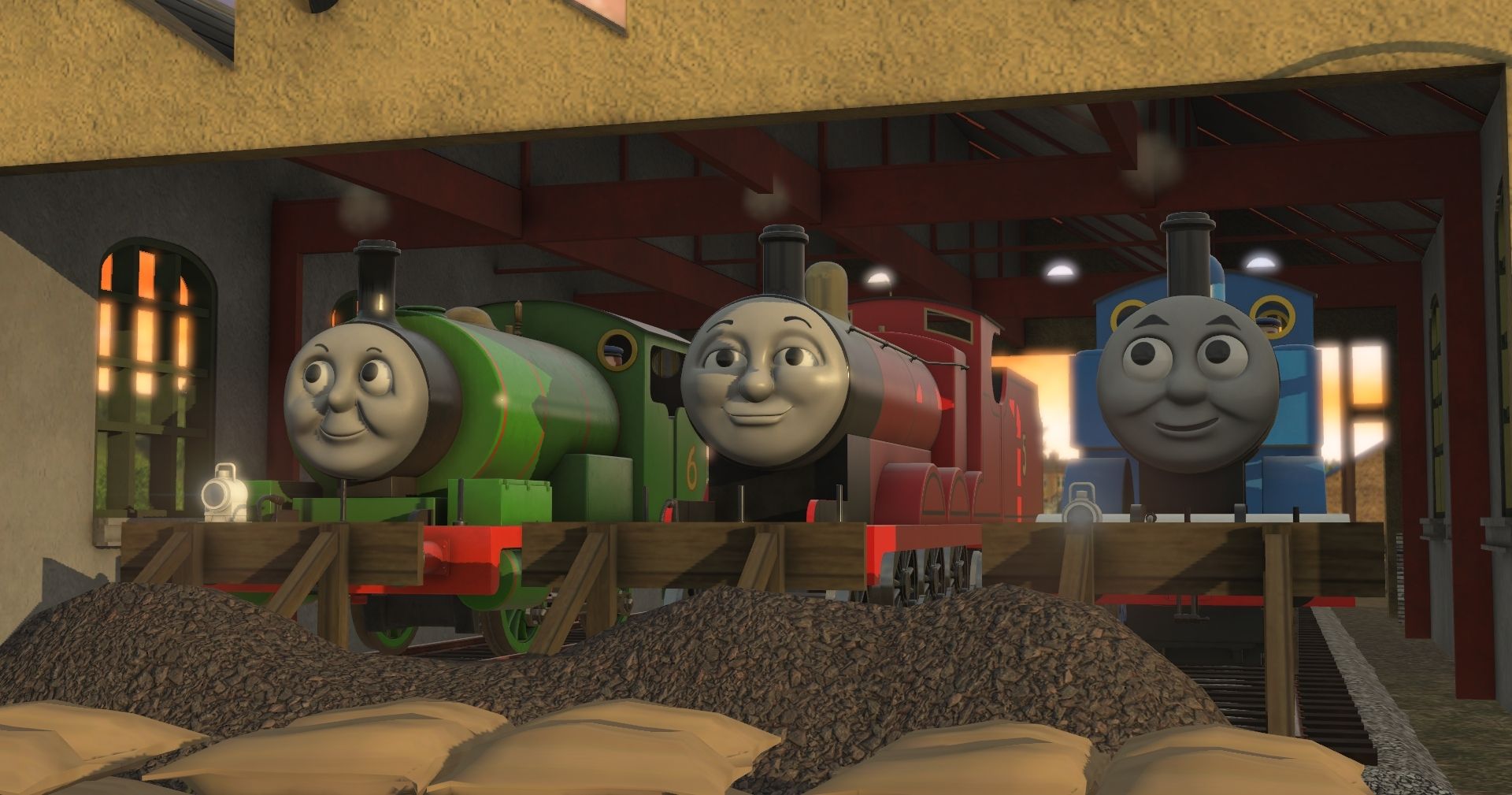 Tags: Trainz Railroad Simulator 2019, Hybrid IOS - (film friendly), Hybrid IOS - (film friendly) - Default, S3 - Thomas The Tank Engine, TTTE - James the red engine, SudrianRails - Percy the Small Engine, TTTE - James's Tender