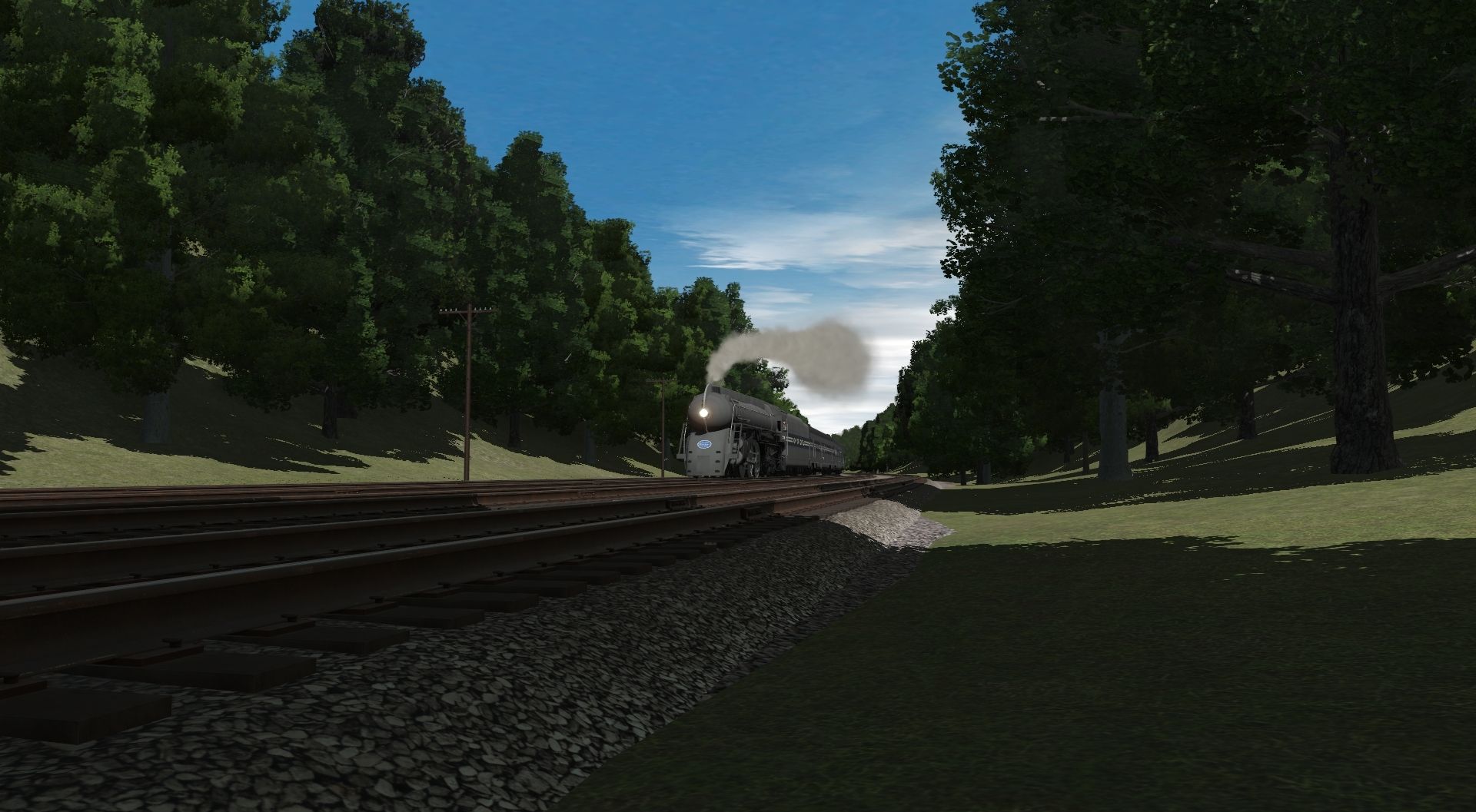 Tags: Trainz Railroad Simulator 2019, V&M Mountain Division, Default, NYC J3a Dreyfuss Hudson partially streamlined, PRR I1sa Engine Post-War, NYC J3a Dreyfuss Hudson Tender, NYC 20th Century Limited 01 Baggage, NYC 20th Century Limited 02 Lounge, NYC 20th Century Limited 03 Sleeper 17-1, NYC 20th Century Limited 04 Sleeper 10-5, NYC 20th Century Limited 05 Diner, NYC 20th Century Limited 06 Sleeper 4-4-2, NYC 20th Century Limited 07 Sleeper 13 DBL, NYC 20th Century Limited 08 Observation