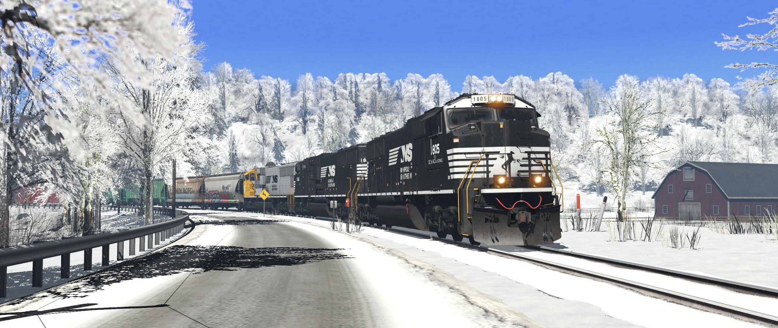 Tags: Trainz Railroad Simulator 2022, Monongahela & Western Pennsylvania, Default, NS SD70ACC DC/AC, NS SD70ACC, NS SD70ACC #1800, NS AC44C6M, NS AC44C6M Blue Mane, NS SD70ACC #1801, ACF Centerflow UP 90649 3 Bay long hatch, ACF Centerflow UP 75980 3 Bay long hatch, AGPX Trinity 3 Bay Hopper, AGPX Trinity 3 Bay Hopper #2, ATSF 60ft Boxcar PS [Late] (Autoparts)