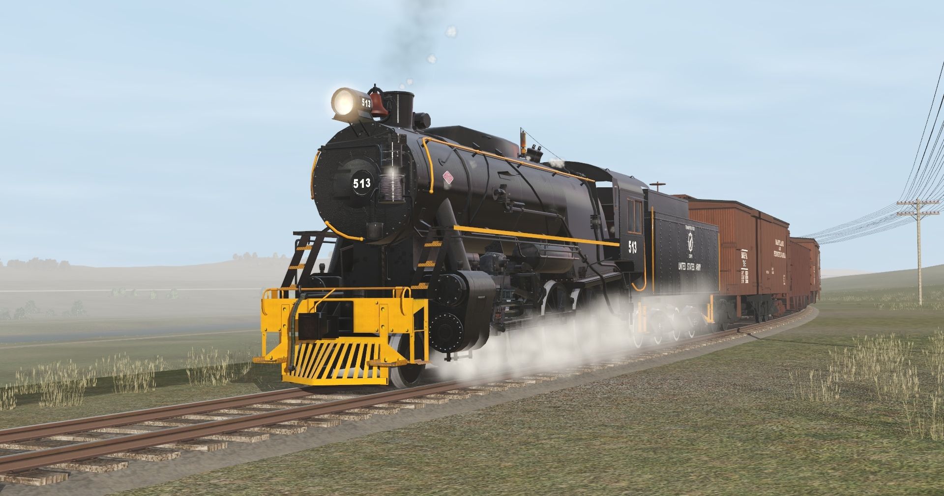 Tags: Trainz Railroad Simulator 2019, Season Town Northern RR, Default, 3DZ USATC S160 Class v2, AFPW K4 21099, 3DZ USATC S160 TENDER v2, M&PA Wood Boxcar, PRR H21a Hopper, M&PA Flat Car, Tidewater Tank Car, H&W Wood Boxcar, H&W Flat Car, H&W Tank Car, H&W Coal Hopper