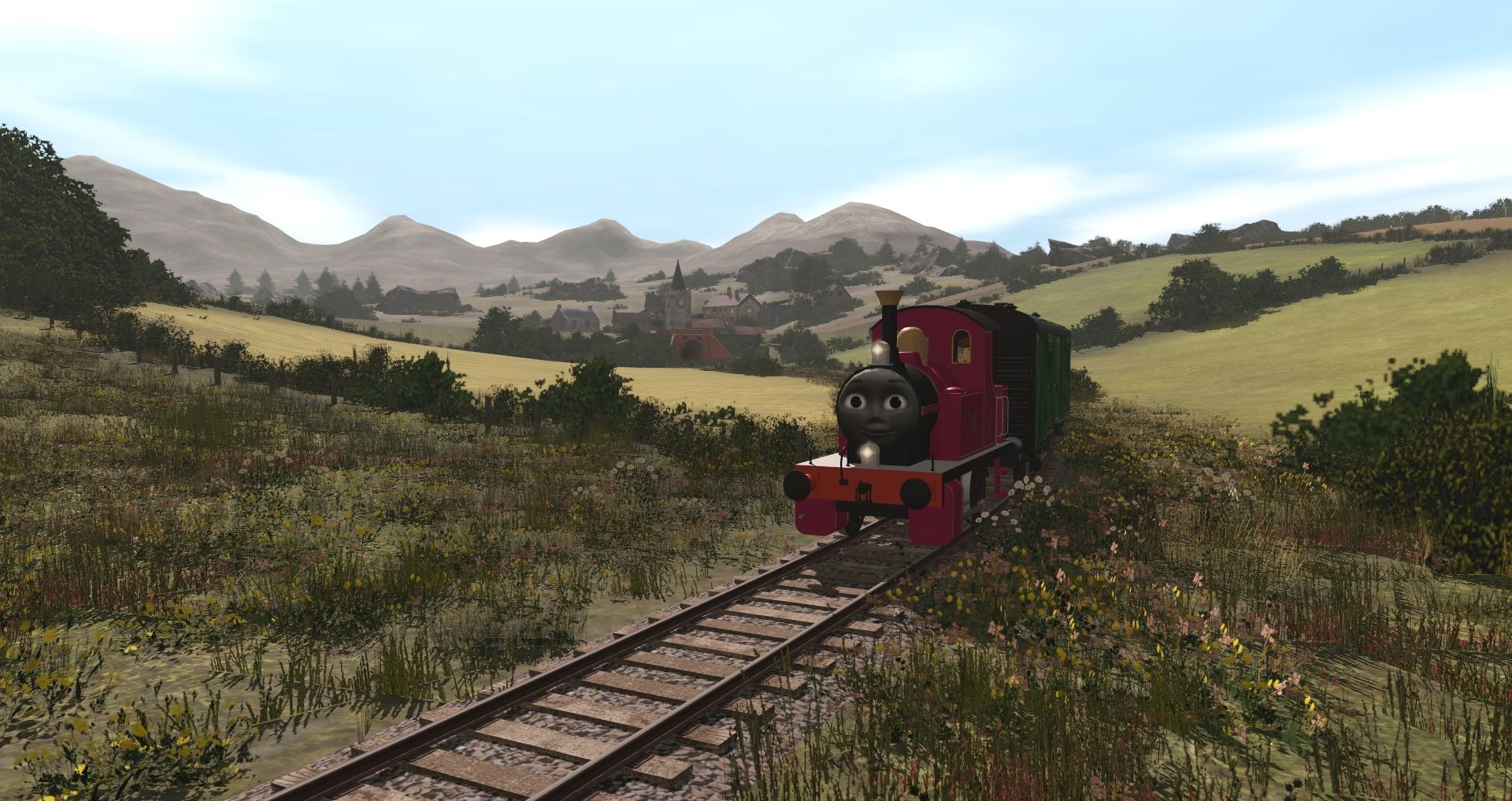 Tags: Trainz Railroad Simulator 2022, Promo Pack #1 - FarawayQuarry13, Promo Pack #1 - FarawayQuarry13 - Default, Lachlan - Lady Katheryn the Industrial Engine (AJS Scripted), SR Maunsell Van C - Passenger Brake Van - Malachite, SR Maunsell Van U - Utlity Van - Malachite Green, LNER BYP Pigeon Van