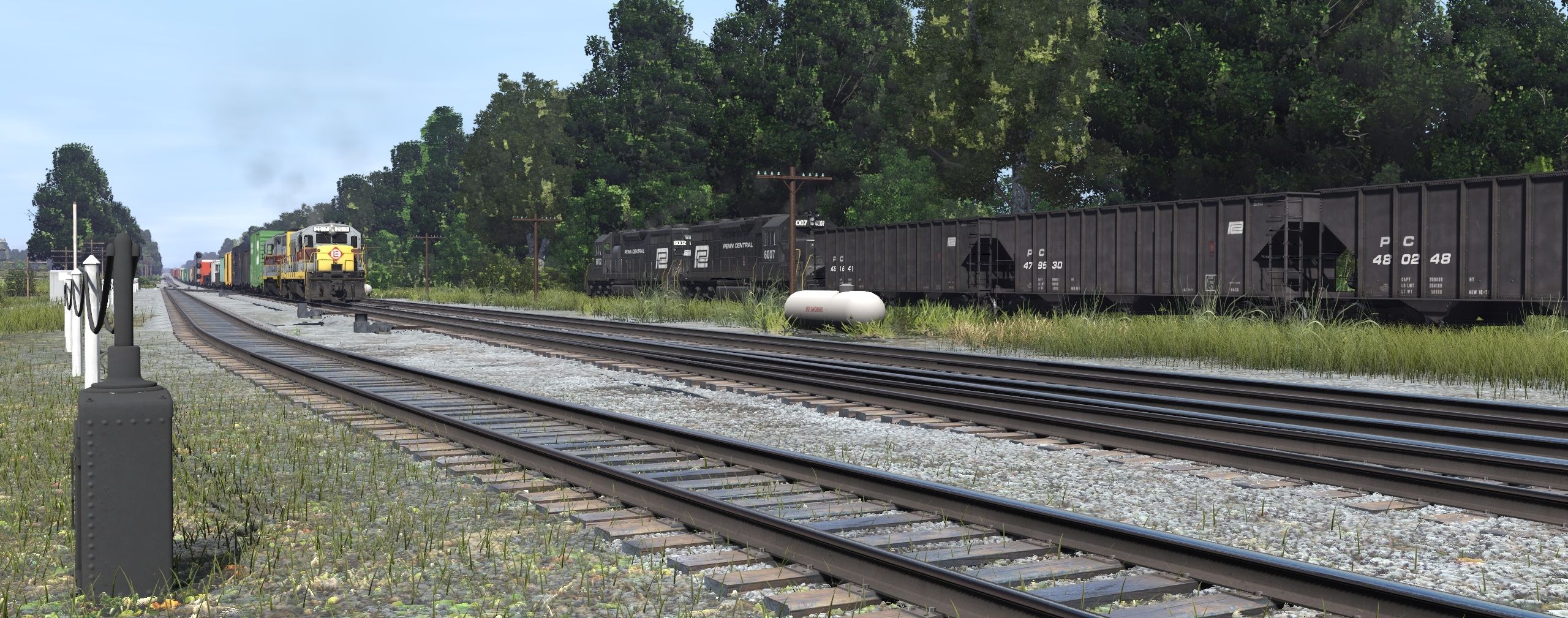 Tags: Trainz Railroad Simulator 2022, EL Mahoning Divison 9-20-22 Jon2, Default, PC SD35, EL U25B ph4 2513-2527 late, GP35: EL #2572, EL SD45 Bicentennial, EL SD45M Bicentennial, BN 40' Hy-Cube PS-1 ex-CBQ, CRR LO 2003, C&O 60' ACF Boxcar DD (1970), PC 100 Ton Hopper, C&O 50' PS-1 Insulated (1960s), DT&I PS-2 3510