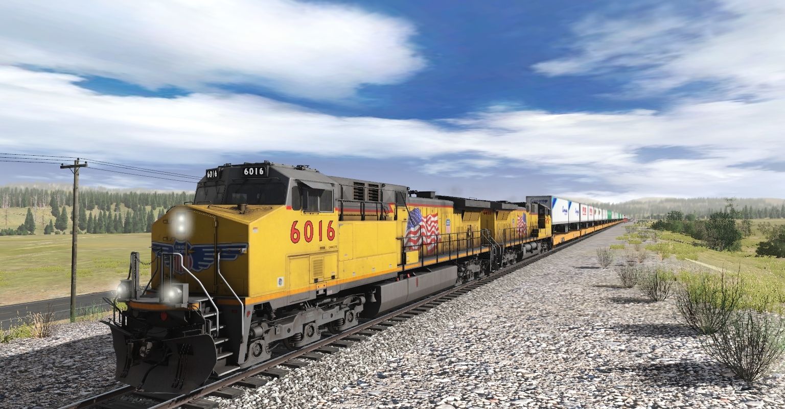 Tags: Trainz Railroad Simulator 2022, West from Denver - Moffat Route, Default, UP AC4400CW 5982-6081 TS19 1, Flatcar 89 ft TTX for Trailers DES