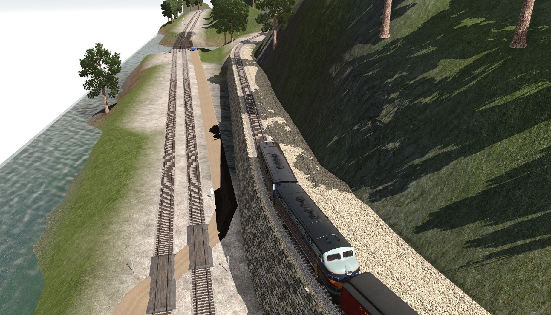 Tags: Trainz Railroad Simulator 2019, Highland Valley TRS2019, Default, CofG F3A Ph 2b #902 Late, CofG F3A Ph 2b #901 Late, N&W Tool Car #1407, TVRM Coach Lounge, Southern Coach Lounge, TVRM Tool Car 50, N&W Powhatan Arrow 05 P3 Standard Coach 539, Silver Coach, N&W NS Powhatan Arrow 02 P2 Divided Coach 511