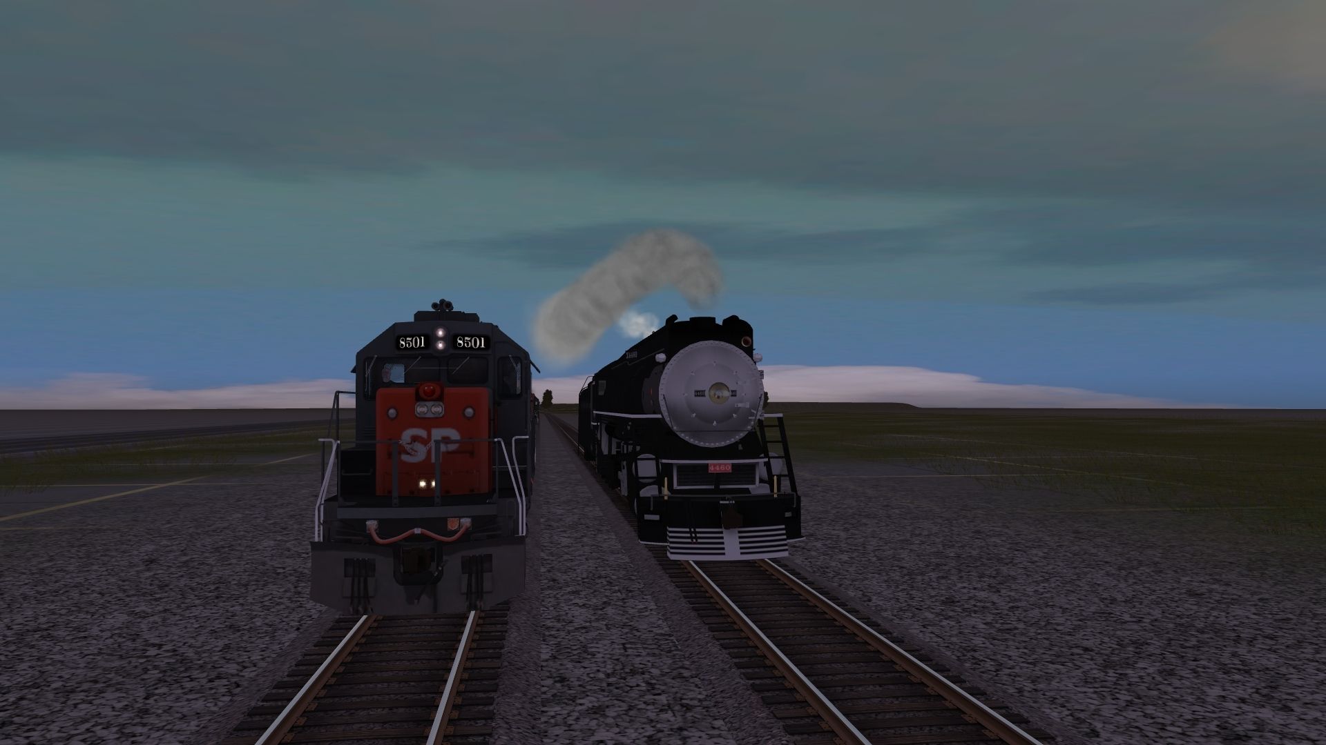 Tags: Trainz: A New Era, Southern Pacific Celia Pass, SP SD40T-2, SP GS-6 #4460 1943 Warbaby Engine, SP SD45, SP GS-6 #4460 1943 Warbaby Tender