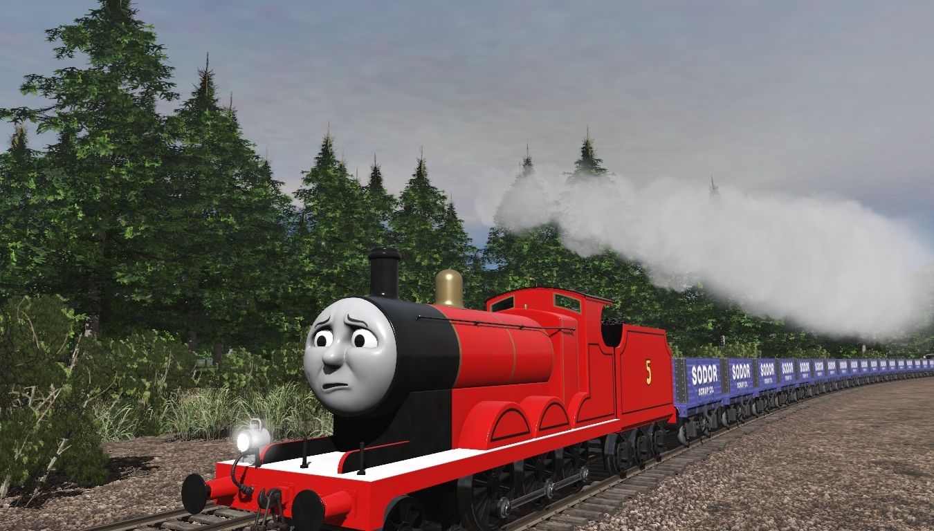 Tags: Trainz Railroad Simulator 2019, Canadian Rocky Mountains - Golden BC, TTTE - James the red engine, TTTE - Duck, TTTE - James's Tender, Sodor Scrap, SR brake van