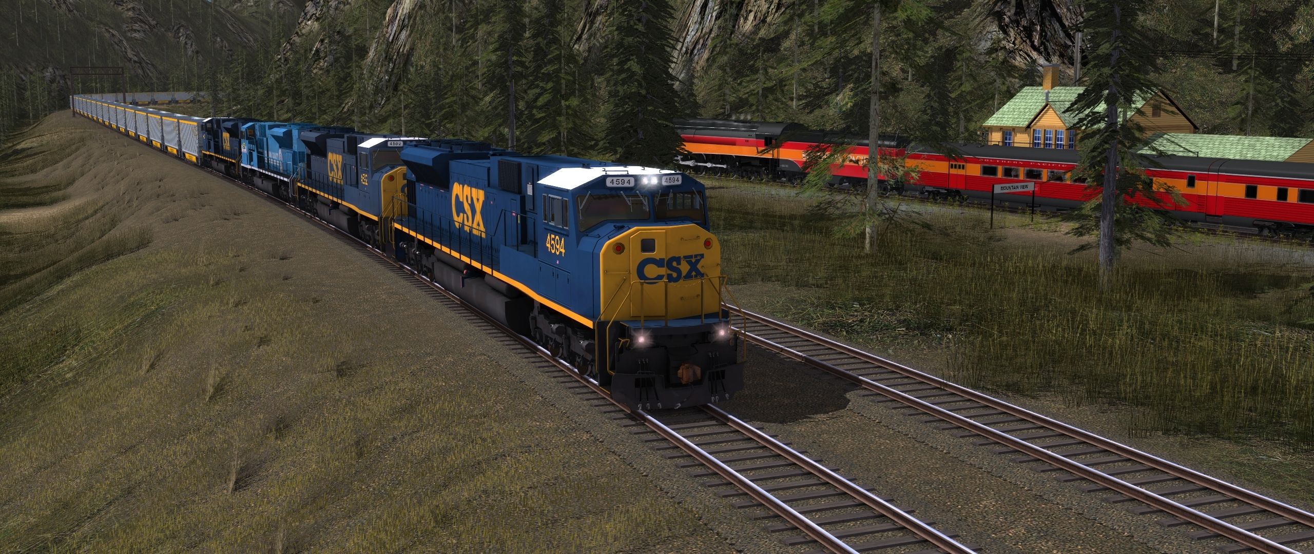 Tags: Trainz: A New Era, MOUNTAIN VIEW, MOUNTAIN VIEW - Default, SD80MAC CSX Dark Future, SD80MAC CSX Patched, SP GS-4 Engine Daylight, SD80MAC CSX YN2, SP Coast Daylight Articulated Chair Car - ACW, SP Coast Daylight Articulated Chair Car - ACM, SP Coast Daylight Parlor Car, SP Coast Daylight Parlor-Observation Car, SP Coast Daylight Chair Car, SP Coast Daylight Baggage-Chair Car, SP GS-4 Tender Daylight Postwar