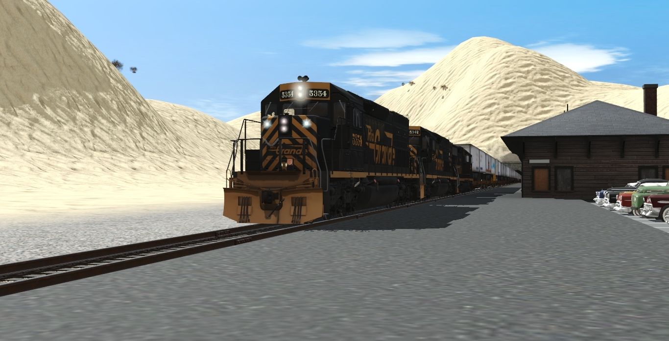 Posted by: EvanGaines | Posted:2023-01-28 20:05:41 Caption: Tags: Trainz Railroad Simulator 2022, Railfan Route: Desert Dunes, Rio Grande Scenes - June 1983