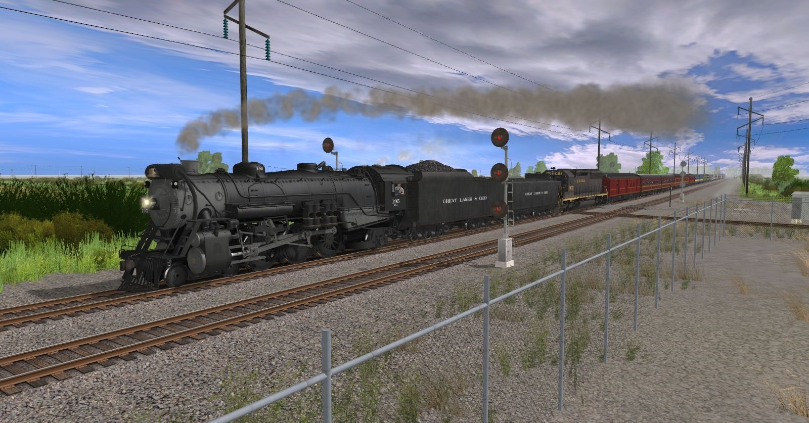 Tags: Trainz: A New Era, PRR Greenville to Indianapolis, GL&O 195 Engine, CRR SD45-2, GTW EMD SDP40F #9040, GTW EMD SDP40F #9047, GL&O 195 Tender, GL&O 195 Aux Tender, ACE 3000 614T Tool Car, OHCR Coach Lightweight V2, OHCR Coach Lightweight V1, OHCR Coach Heavyweight, ACE 3000 614T Coach