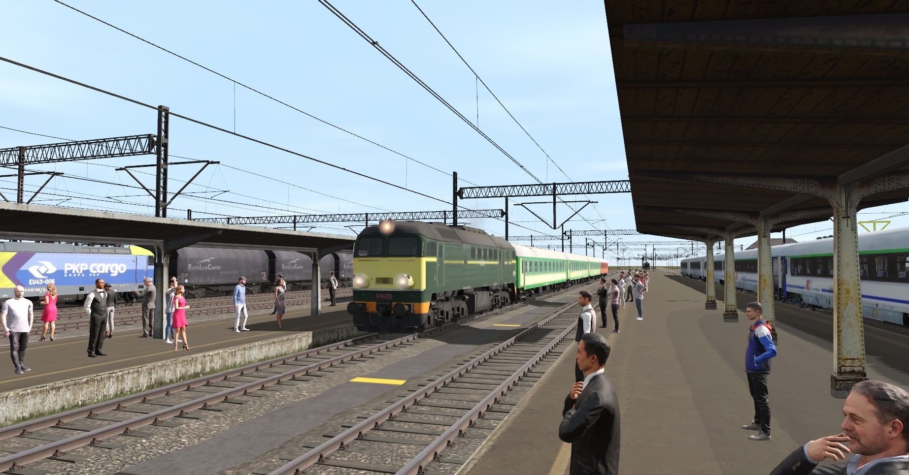 Tags: Trainz Railroad Simulator 2022, AL Pila PKP route 1.39, AL Pila PKP route 1.39 - Default, PKP_EP07-1016, PKP ST44 001 Lok.W-wa Praga, EMT PKP Cargo Bombardier Traxx EU43-006, PKP ET21 341 3E MD Legnica, PKP WMB10-131, PKP-IC B9nopuz 111AMM-20 st.W-Wa Grochow, SBB Slmmnps, SBB tbis ZMR, Shimmns 708 SBB-CFF, SAP_Catenary_Height_Gauge, SBB Habbins