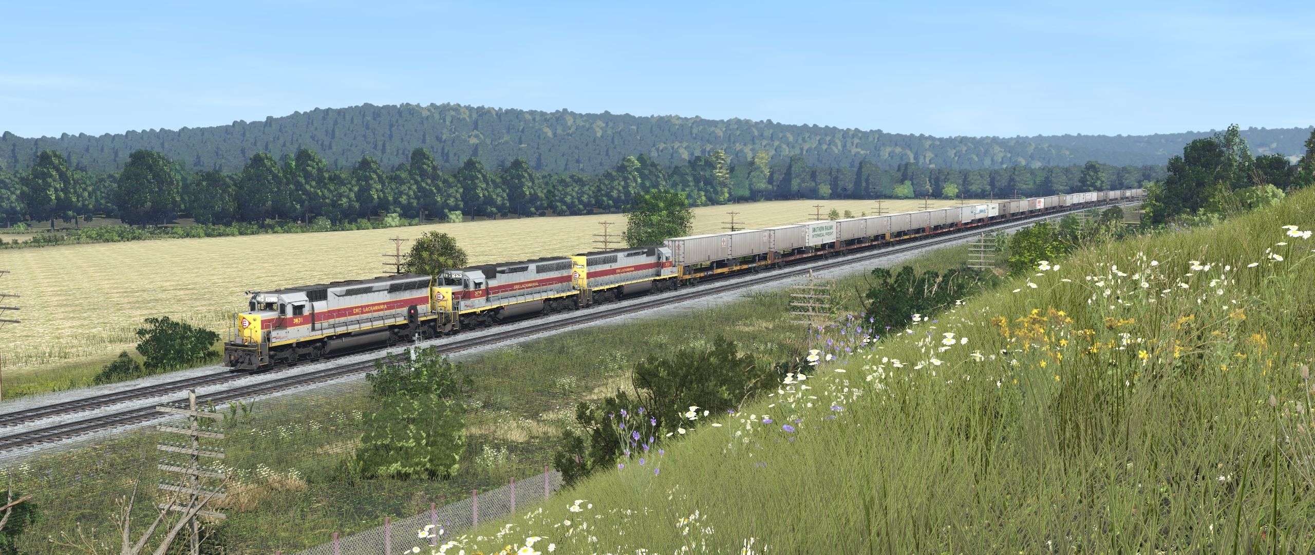 Tags: Trainz Railroad Simulator 2022, EL Mahoning Divison 9-20-22 Jon3, Default, EL SD45, EL SD45-2, PS: TTX 85' Flatcar 40' Yellow, PS: TTX 85' Flatcar, PS: TTX 85' Flatcar - 1, EL Bay Window Caboose Maroon
