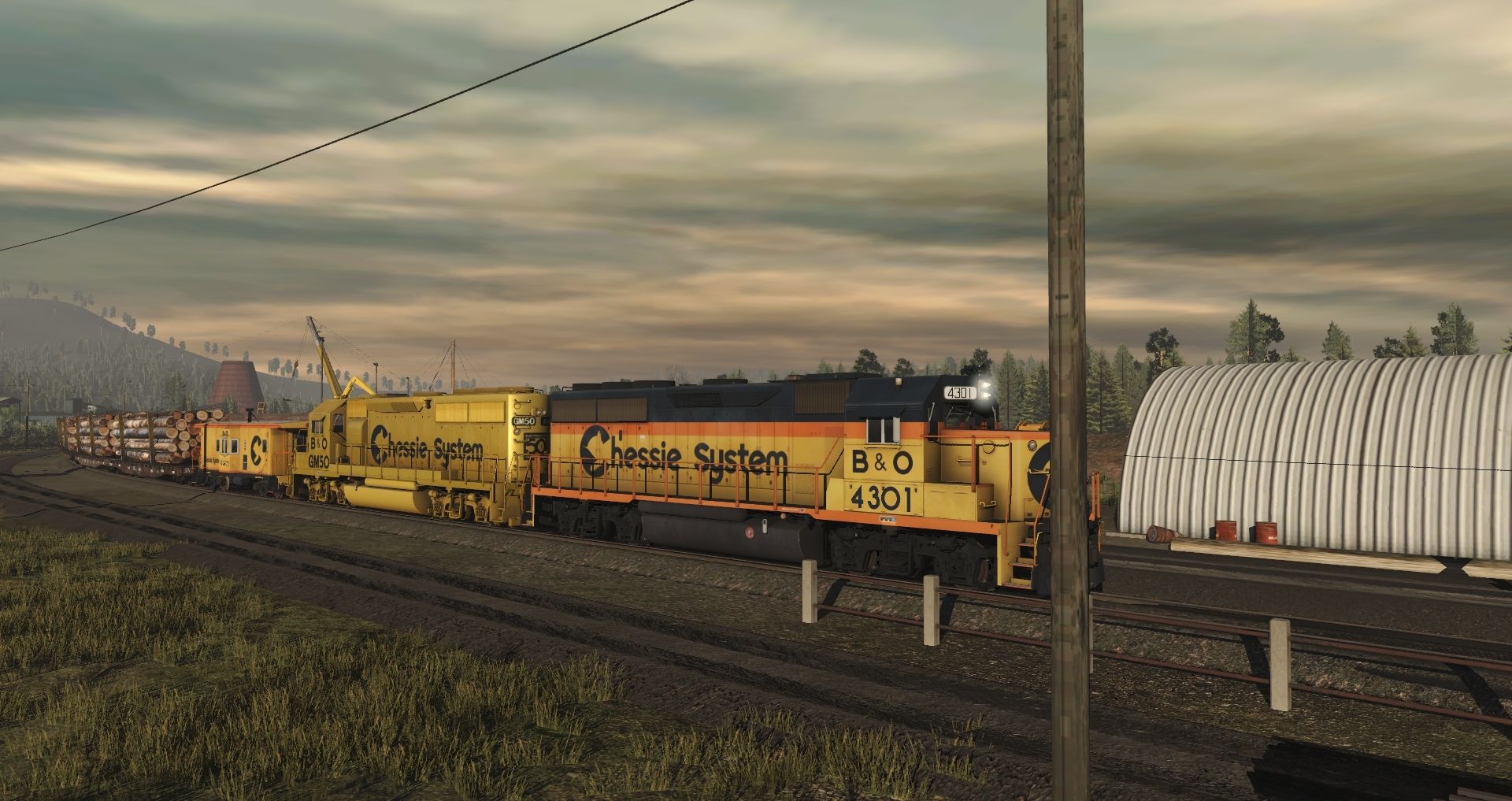 Tags: Trainz Railroad Simulator 2019, Eagle River Railway b., 01 Monday - 14:57 21/05/2022 - 00:19:01, Chessie System GP40-2, Chessie GM50 GP40-2, Chessie System Bay Window Caboose 1, ERSX 54ft flatcar