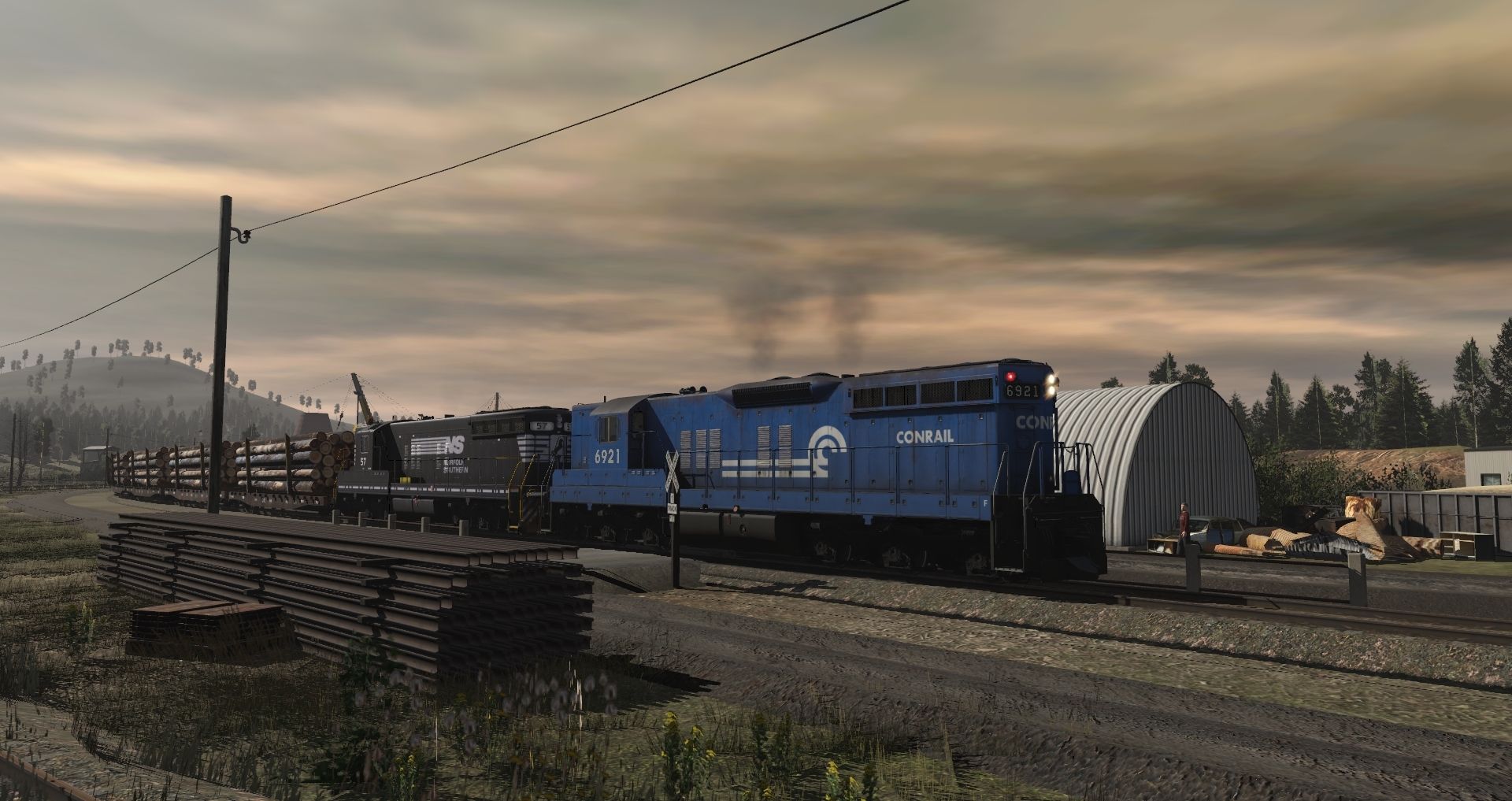 Tags: Trainz Railroad Simulator 2019, Eagle River Railway b., 01 Monday - 14:57 21/05/2022 - 00:19:01, CR SD9, NS SD9M #57, ERSX 54ft flatcar