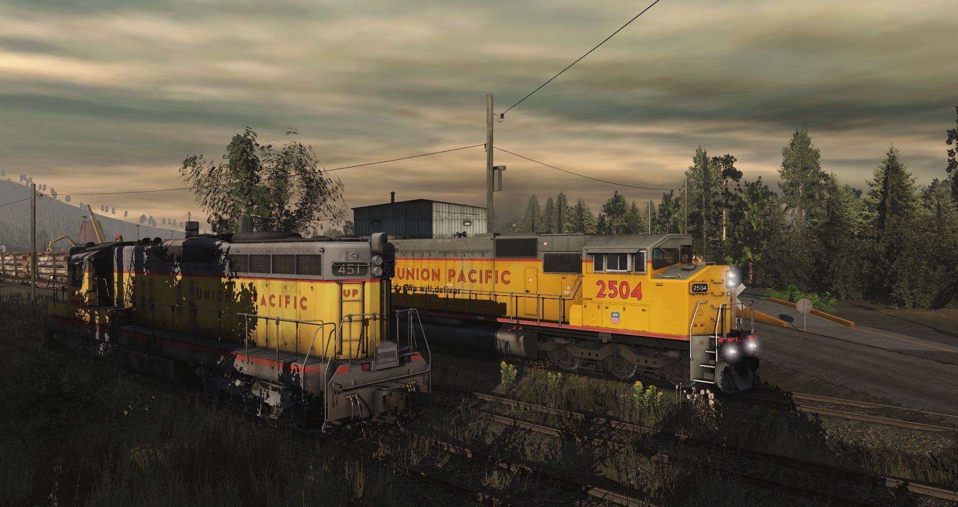Tags: Trainz Railroad Simulator 2019, Eagle River Railway b., 01 Monday - 14:57 21/05/2022 - 00:19:01, UP SD7 high hood, UP SD60M(Triclops), ERSX 54ft flatcar