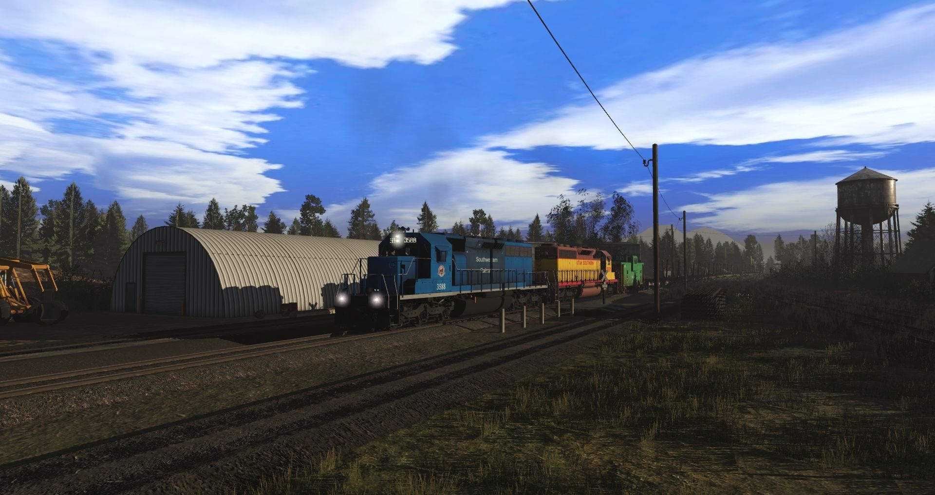 Tags: Trainz Railroad Simulator 2019, Eagle River Railway b., 01 Monday - 14:57 21/05/2022 - 00:19:01, WER SD40-2 #3588, Utah Southern SD40-2 #3001 HP, ERSX Ce-11 Caboose (weathered), WP 643 Series Caboose, ERSX 54ft flatcar, BN 60Ft.9In. woodchip gondola 70's dirty, Wood chip Hopper 40 ft v4, Wood chip Hopper 40 ft v5, ERSX 60Ft.9In. woodchip gondola